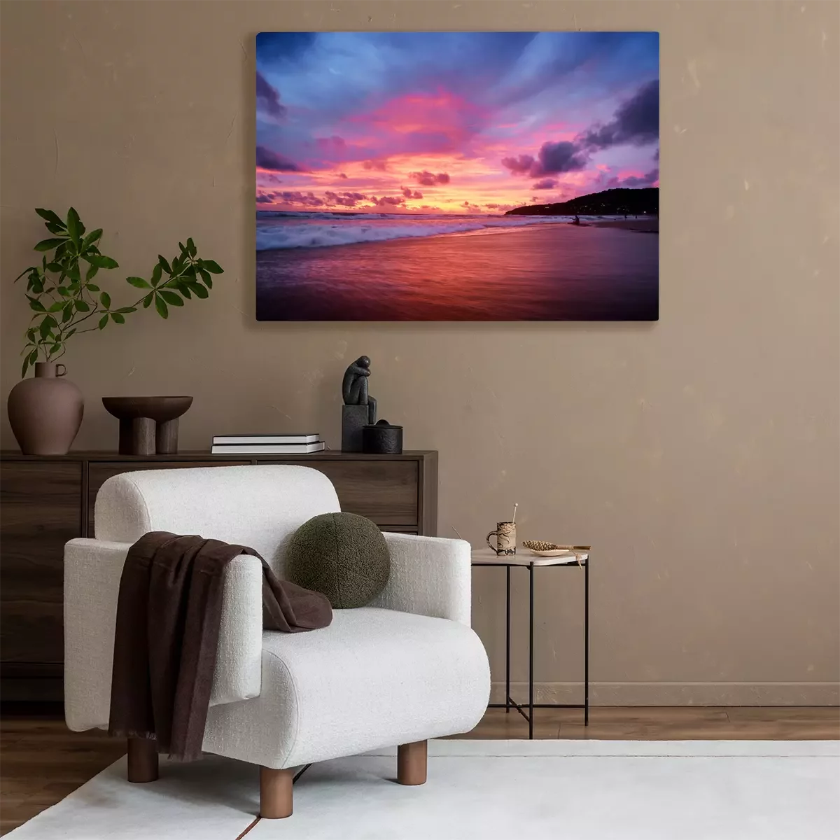 Canvas Beautiful landscape. Sunset on the sea shore.