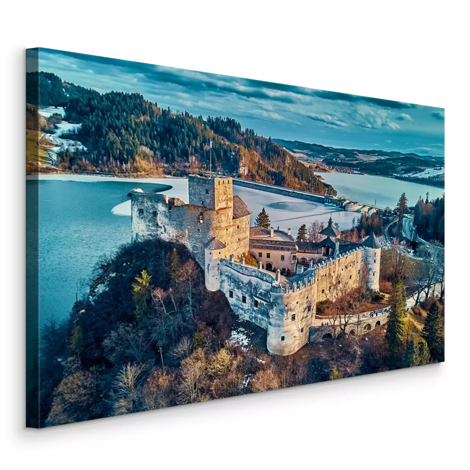 Canvas Beautiful panoramic aerial drone view to the Niedzica Castle also known as Dunajec Castle, located in the southernmost part of Poland in Niedzica, Nowy Targ County, Dunajec River, Lake Czorsztyn