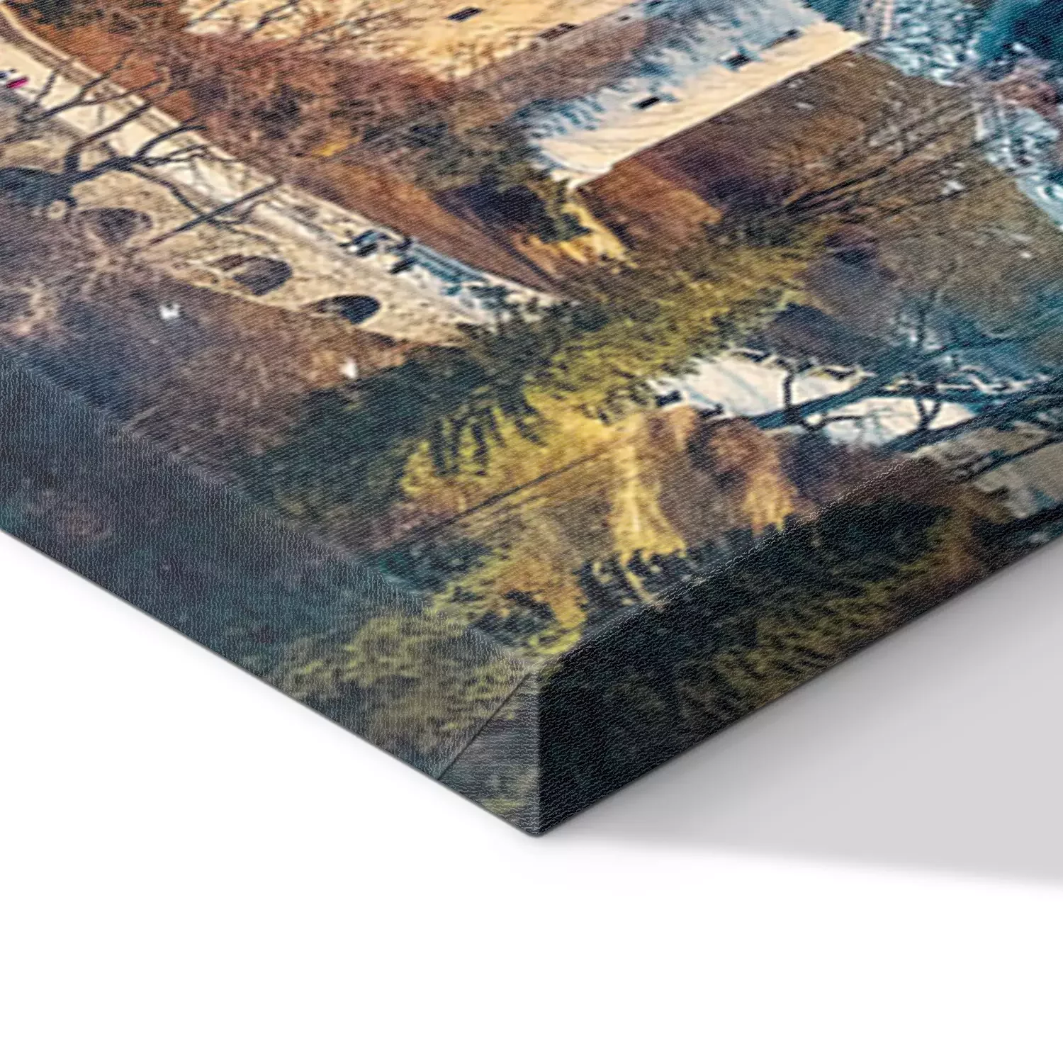 De print wordt aangebracht op hoogwaardig canvas dat op een schildersweefgetouw (spieraam) wordt gespannen. Omdat de print de zijranden bedekt, hoeft het ontwerp niet met een extra kader te worden omlijst. Wij raden ook composities aan die uit meerdere foto's bestaan en zo een coherente compositie vormen.