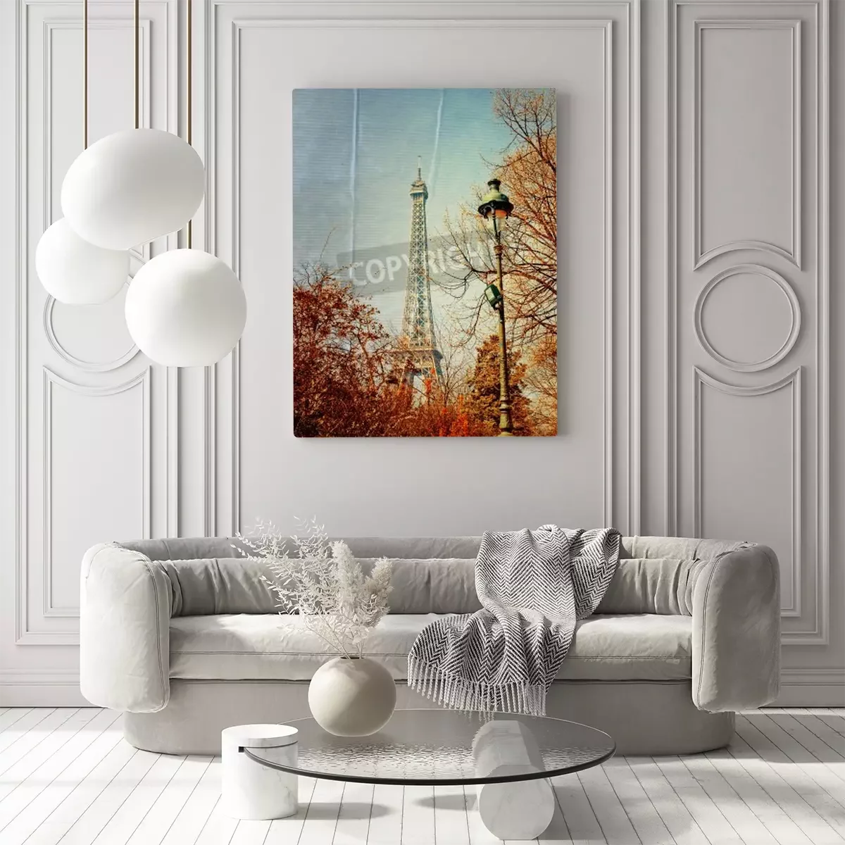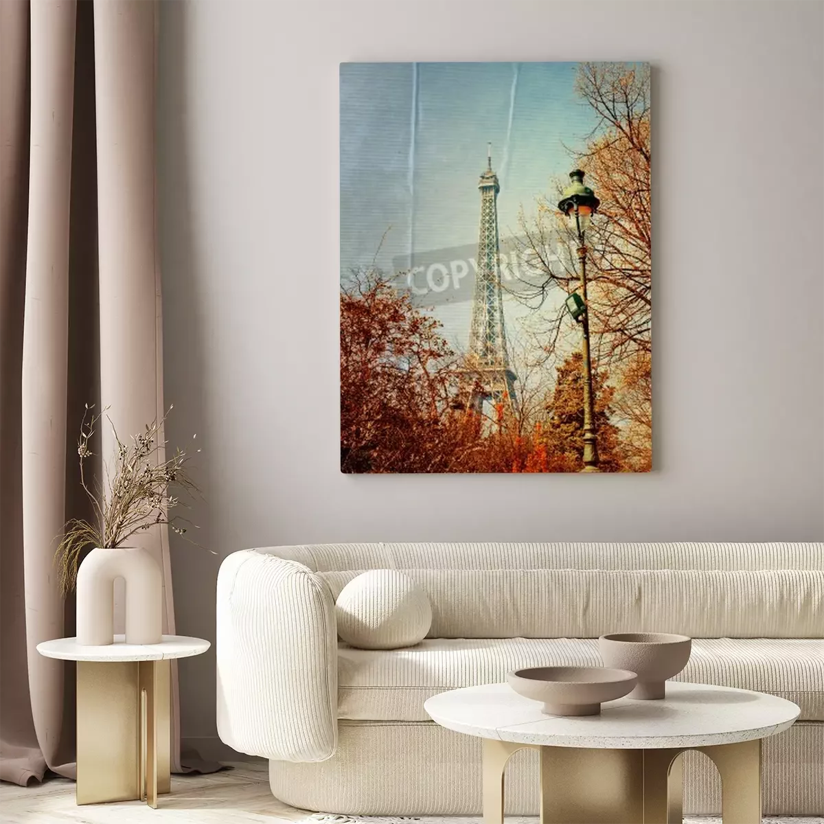 Canvas: Beautiful Parisian sunshine Eiffel Tower (nickname La dame de fer, the iron lady),The tower has become the most prominent symbol of both Paris and France