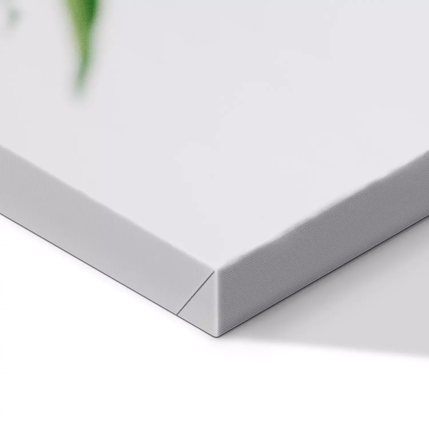 De print wordt aangebracht op hoogwaardig canvas dat op een schildersweefgetouw (spieraam) wordt gespannen. Omdat de print de zijranden bedekt, hoeft het ontwerp niet met een extra kader te worden omlijst. Wij raden ook composities aan die uit meerdere foto's bestaan en zo een coherente compositie vormen.