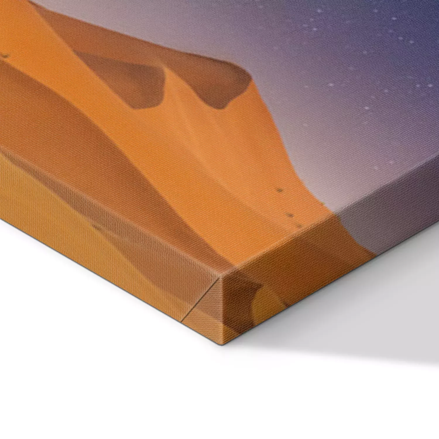 De print wordt aangebracht op hoogwaardig canvas dat op een schildersweefgetouw (spieraam) wordt gespannen. Omdat de print de zijranden bedekt, hoeft het ontwerp niet met een extra kader te worden omlijst. Wij raden ook composities aan die uit meerdere foto's bestaan en zo een coherente compositie vormen.
