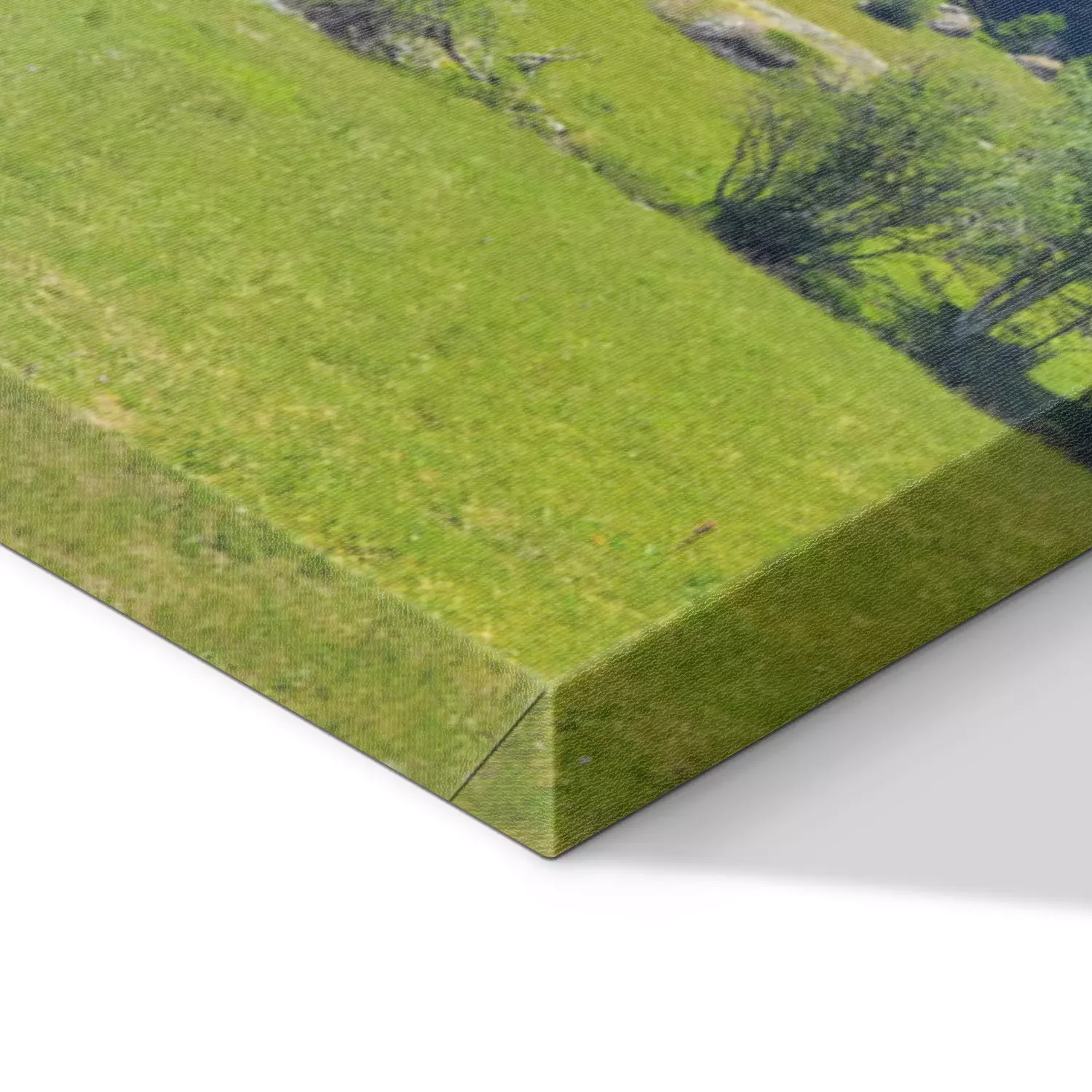 De print wordt aangebracht op hoogwaardig canvas dat op een schildersweefgetouw (spieraam) wordt gespannen. Omdat de print de zijranden bedekt, hoeft het ontwerp niet met een extra kader te worden omlijst. Wij raden ook composities aan die uit meerdere foto's bestaan en zo een coherente compositie vormen.