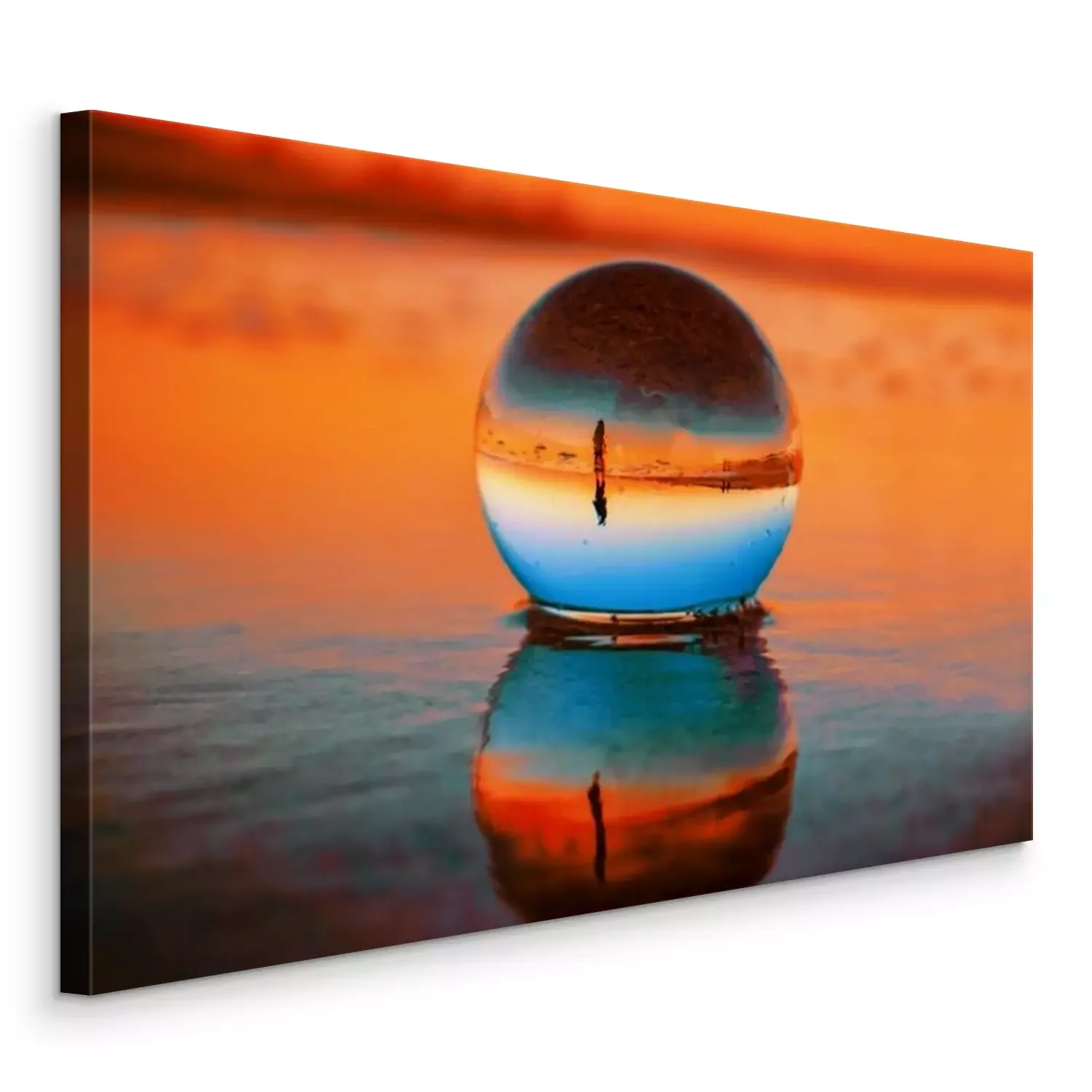 Canvas Beautiful selective focus shot of a crystal ball reflecting the breathtaking sunset