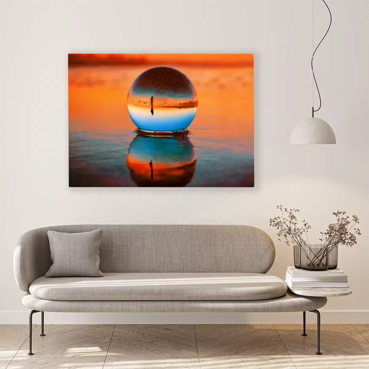 Canvas: Beautiful selective focus shot of a crystal ball reflecting the breathtaking sunset