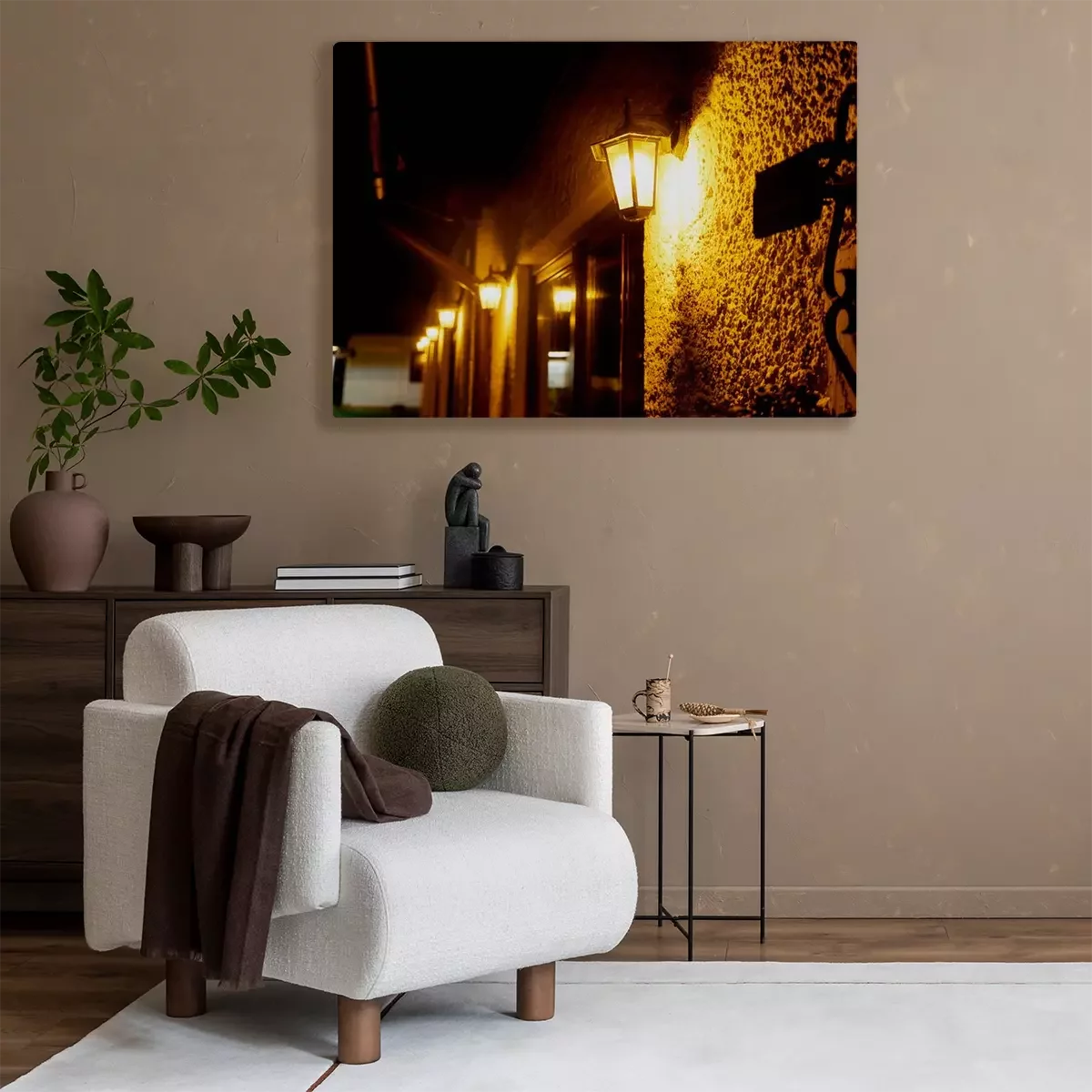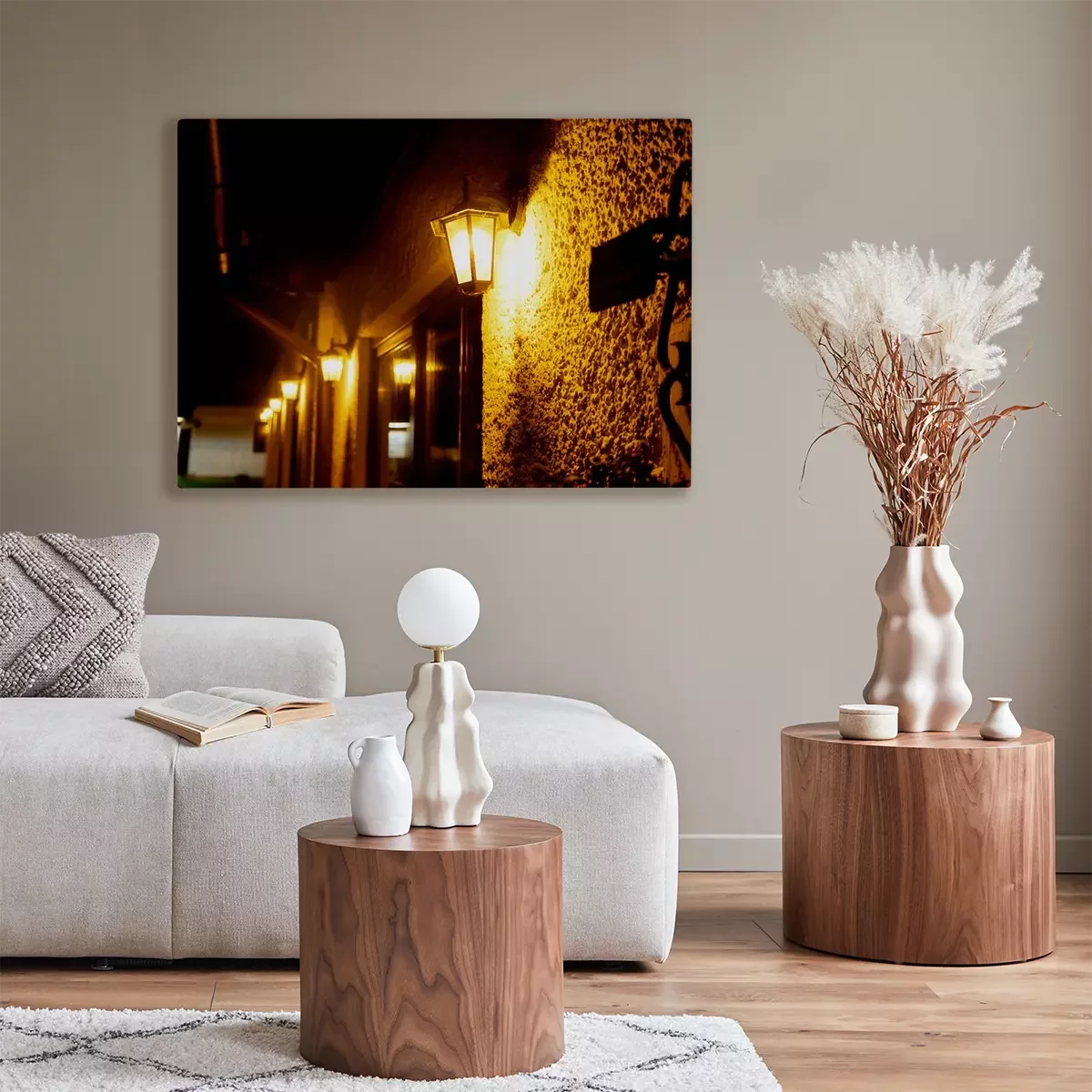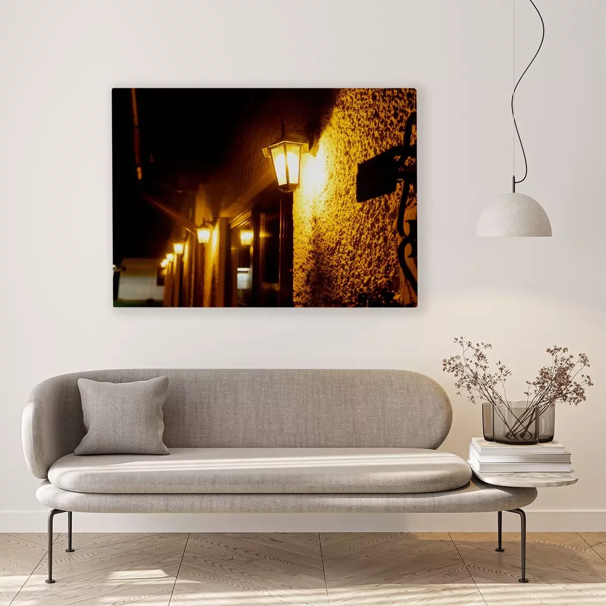Canvas: Beautiful street lanterns illuminated at evening or night