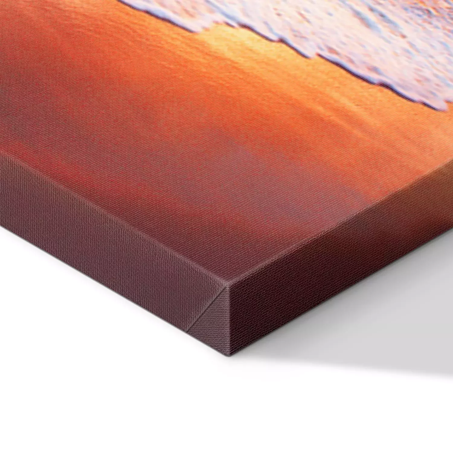 De print wordt aangebracht op hoogwaardig canvas dat op een schildersweefgetouw (spieraam) wordt gespannen. Omdat de print de zijranden bedekt, hoeft het ontwerp niet met een extra kader te worden omlijst. Wij raden ook composities aan die uit meerdere foto's bestaan en zo een coherente compositie vormen.