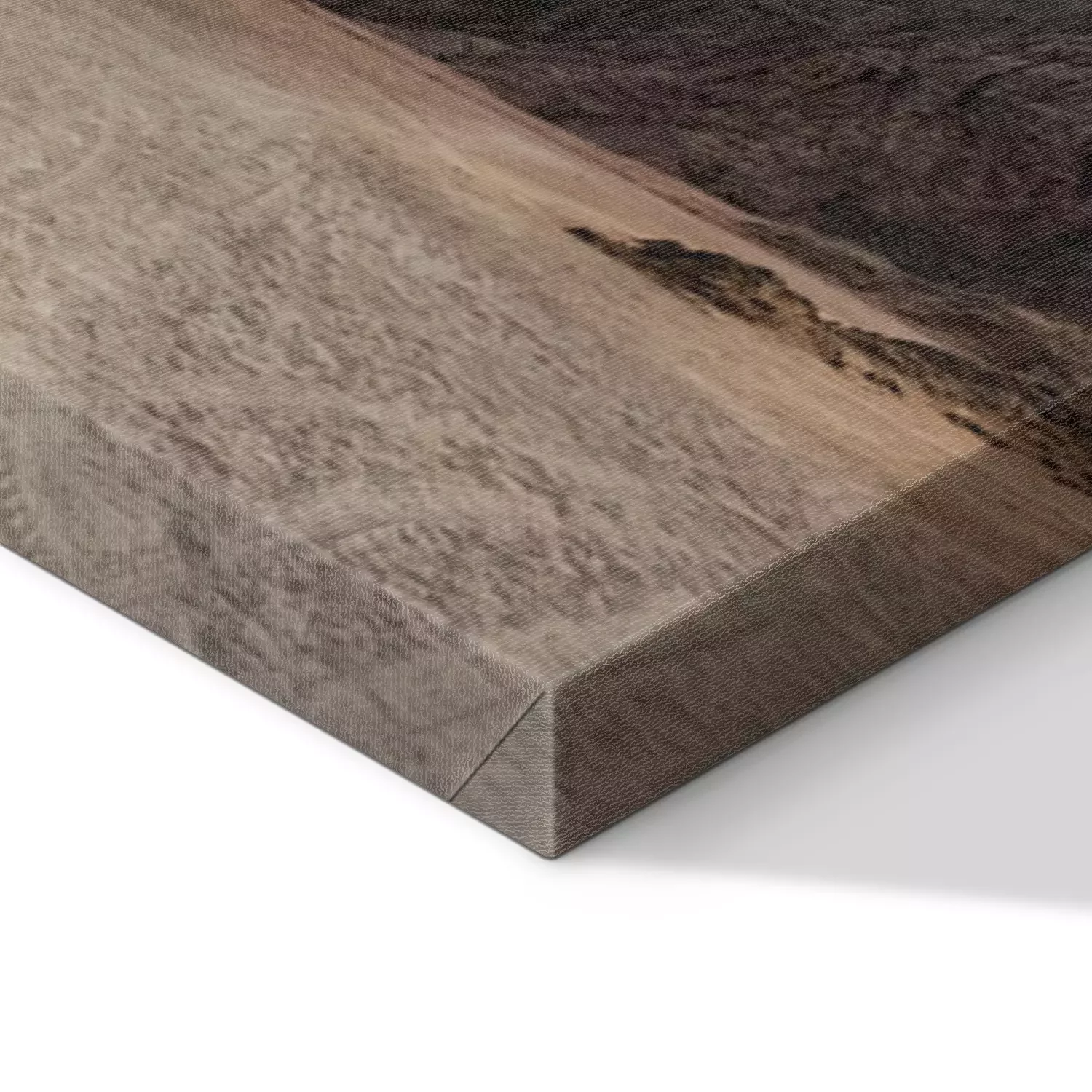 De print wordt aangebracht op hoogwaardig canvas dat op een schildersweefgetouw (spieraam) wordt gespannen. Omdat de print de zijranden bedekt, hoeft het ontwerp niet met een extra kader te worden omlijst. Wij raden ook composities aan die uit meerdere foto's bestaan en zo een coherente compositie vormen.