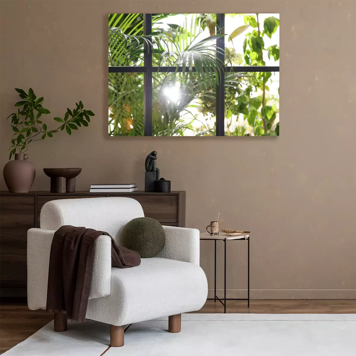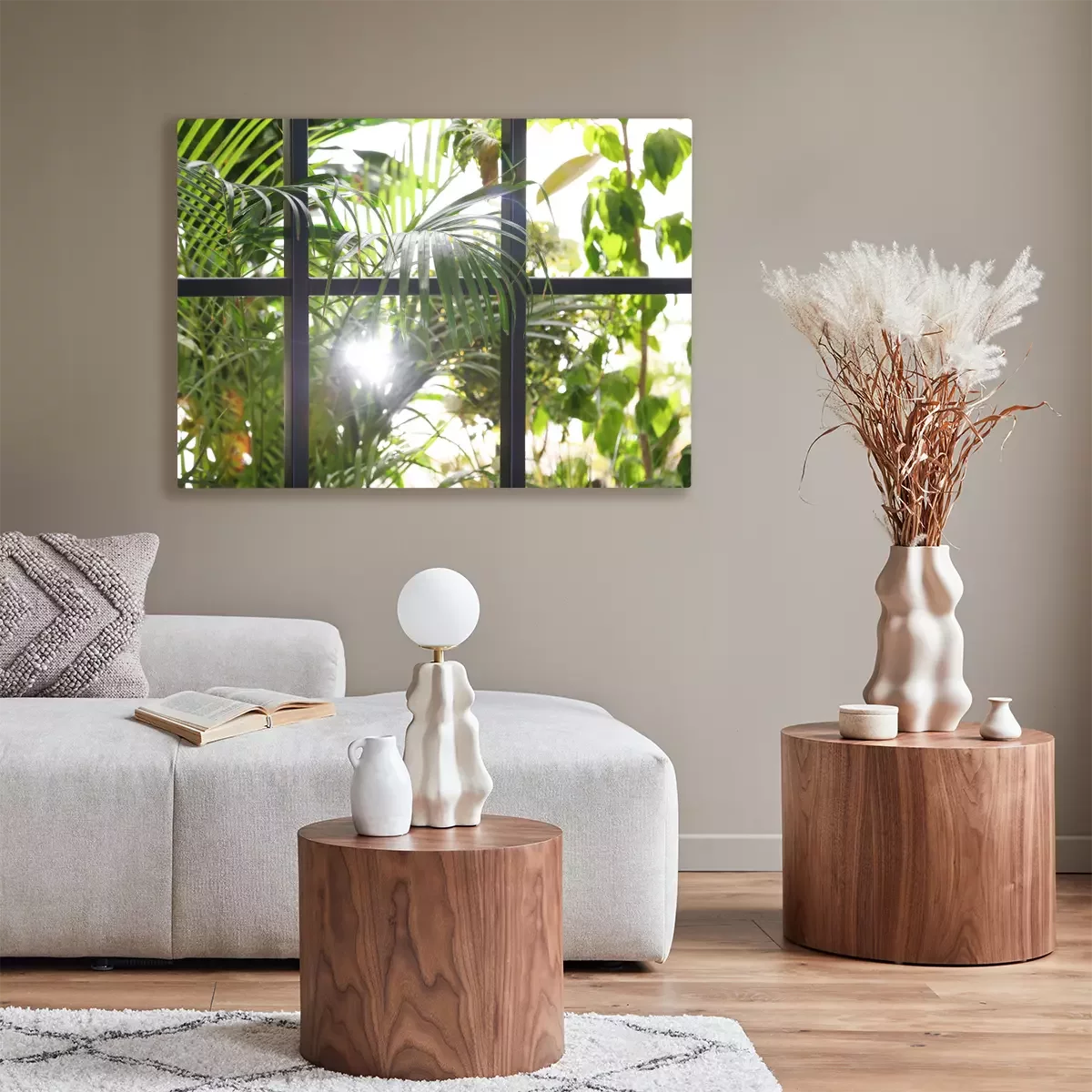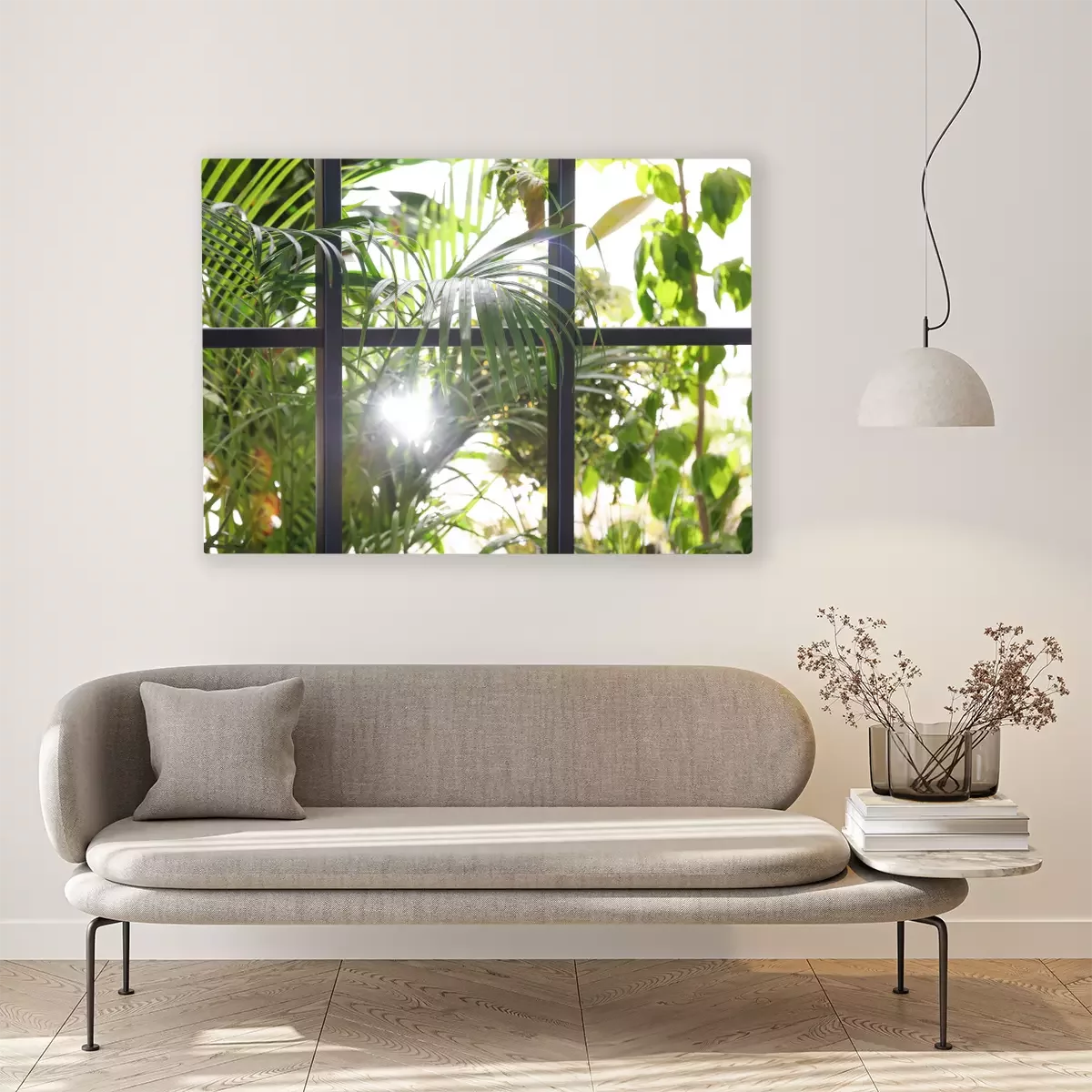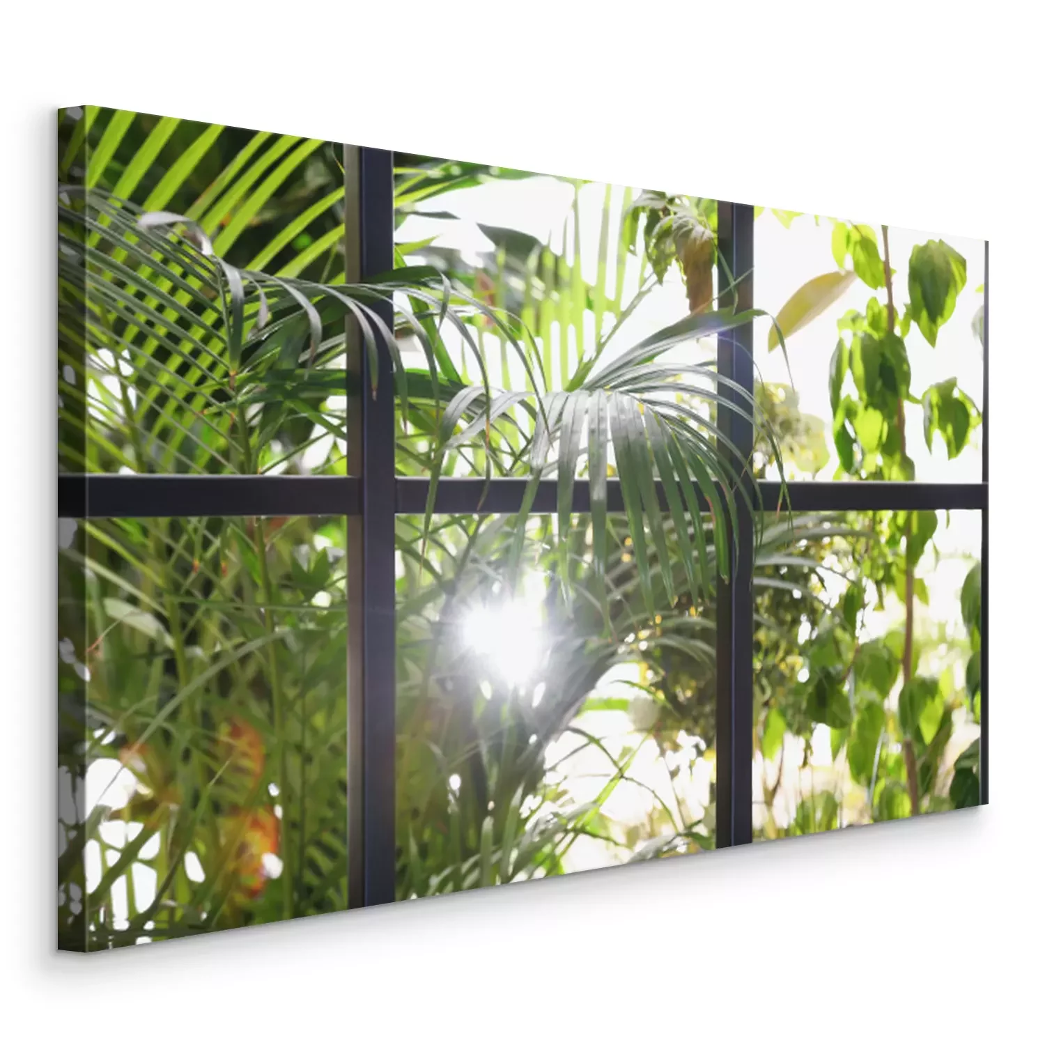 Canvas: Beautiful view through window on garden in morning