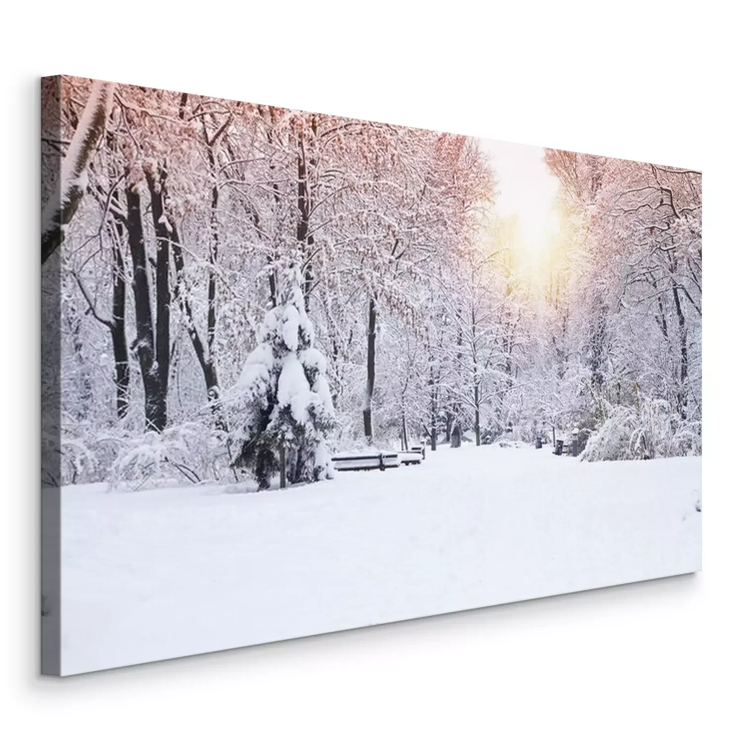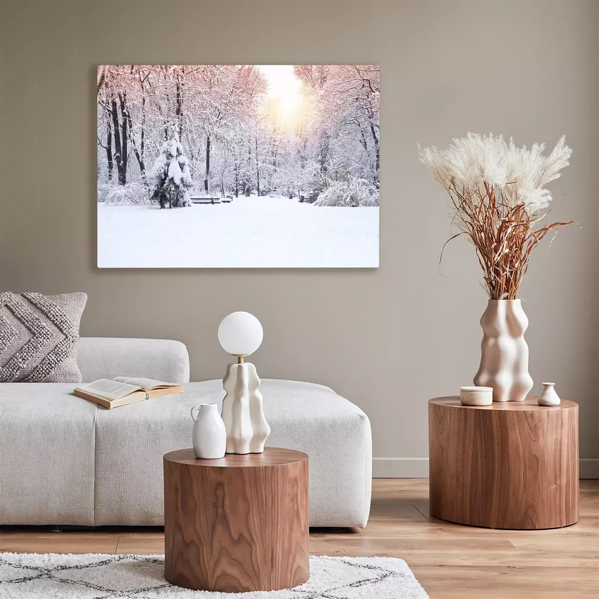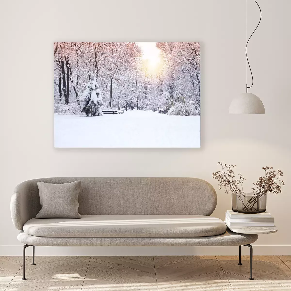 Canvas Beautiful winter park, trees covered with snow. Winter landscape