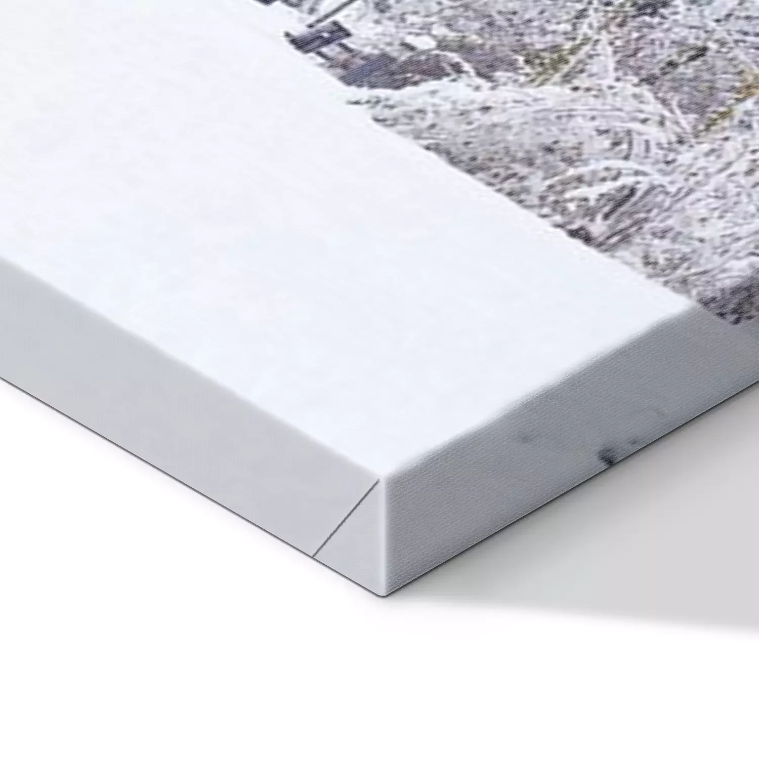 De print wordt aangebracht op hoogwaardig canvas dat op een schildersweefgetouw (spieraam) wordt gespannen. Omdat de print de zijranden bedekt, hoeft het ontwerp niet met een extra kader te worden omlijst. Wij raden ook composities aan die uit meerdere foto's bestaan en zo een coherente compositie vormen.