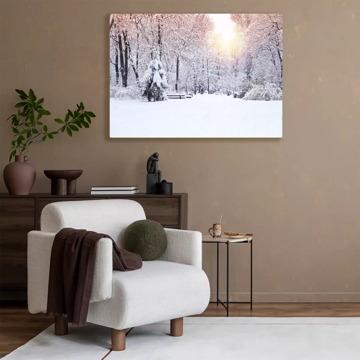 Canvas: Beautiful winter park, trees covered with snow. Winter landscape