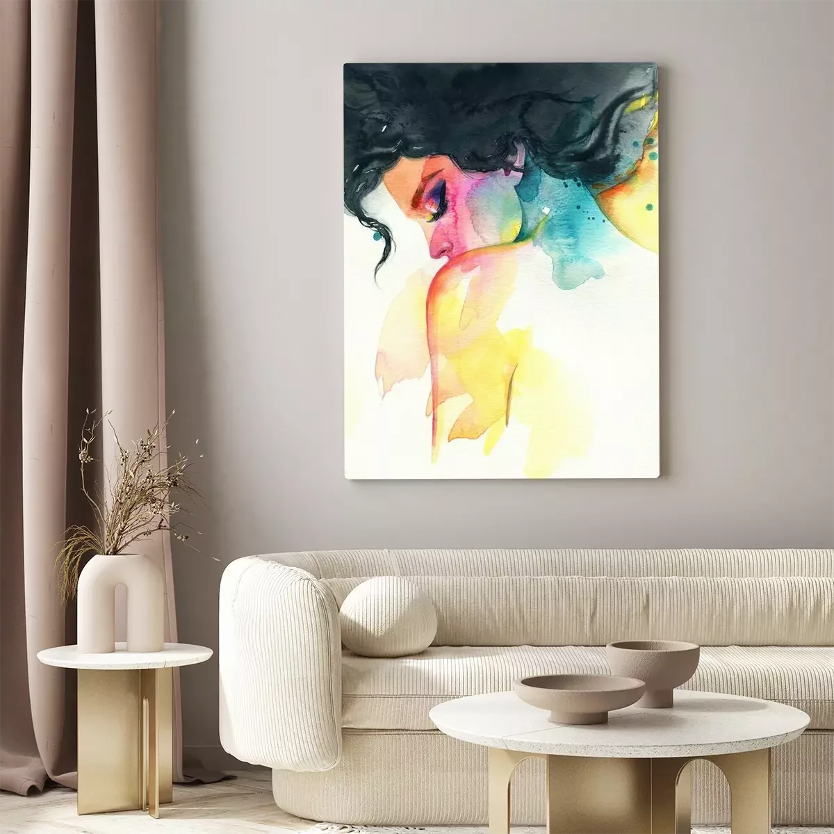 Canvas: Beautiful woman. fashion illustration. watercolor painting