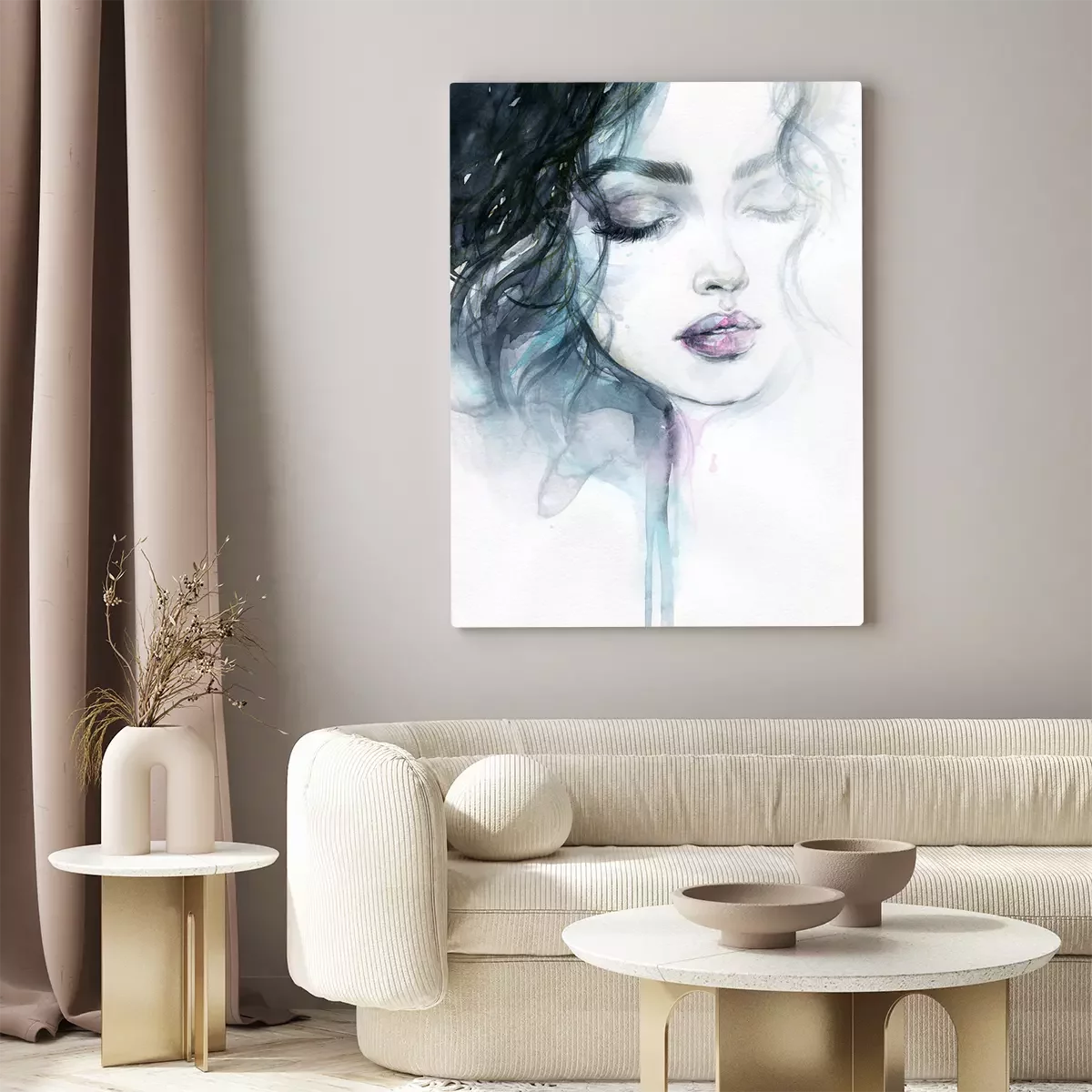 Canvas: Beautiful woman. fashion illustration. watercolor painting