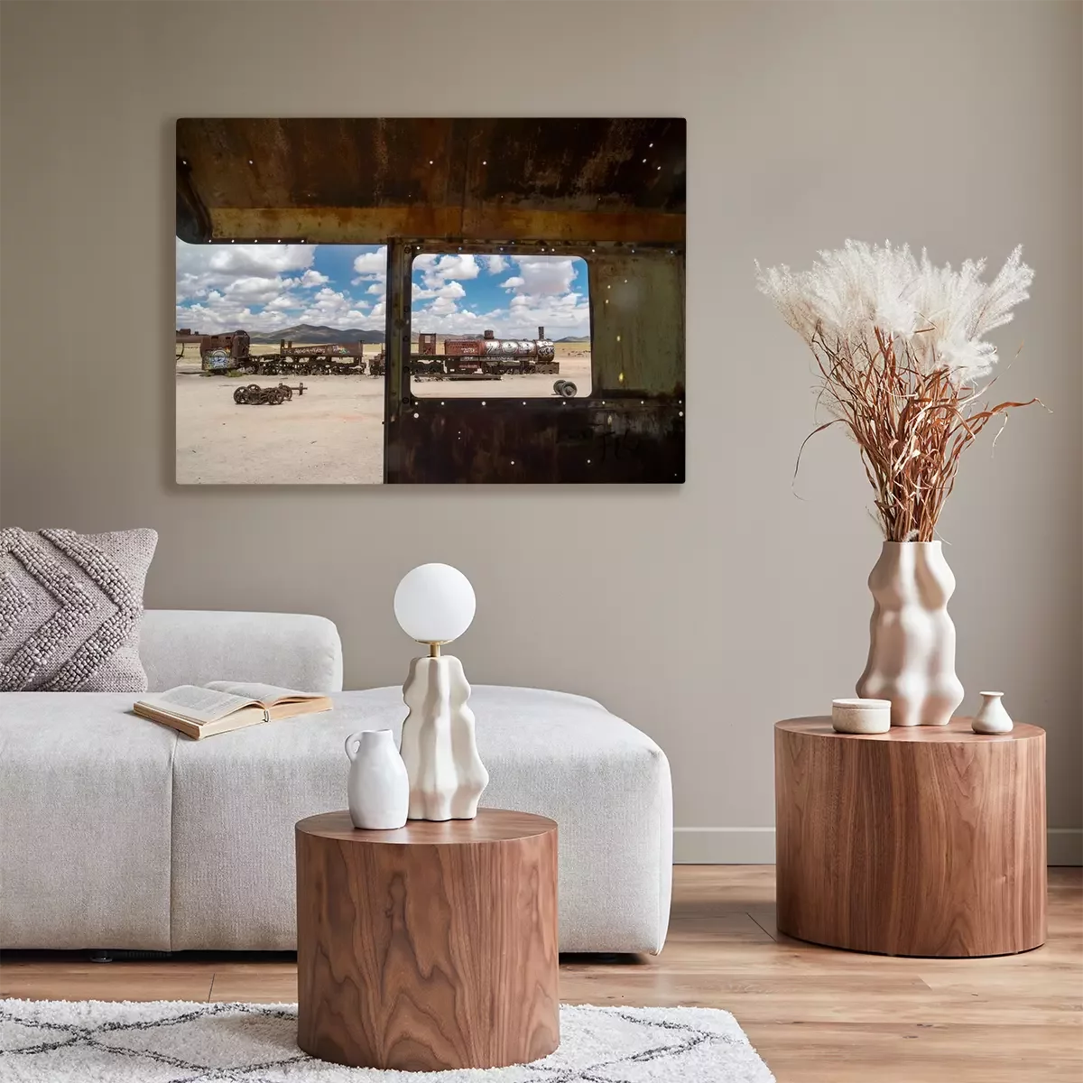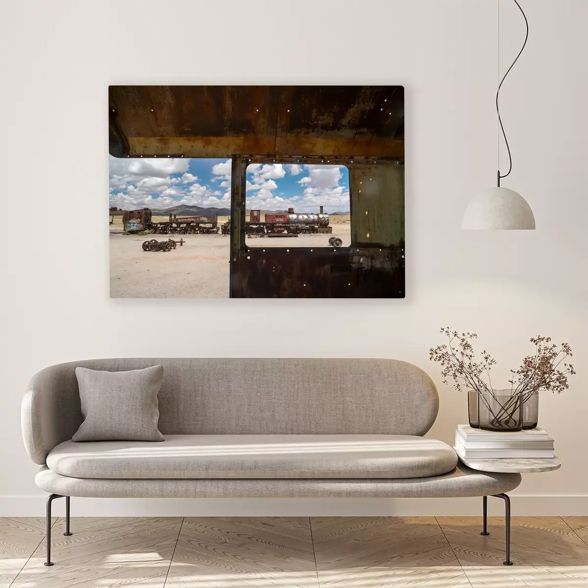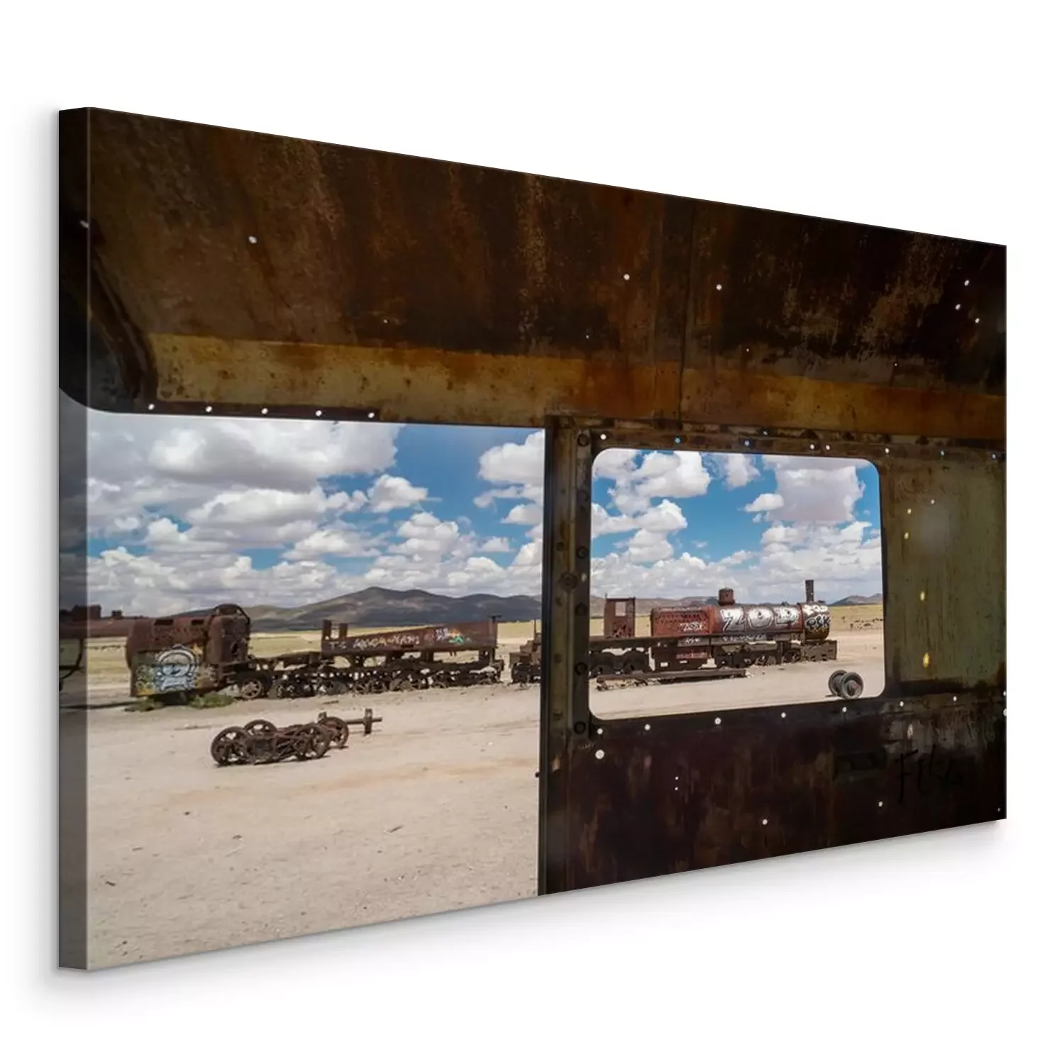 Canvas: Begraafplaats van de trein in Uyuni, Bolivia