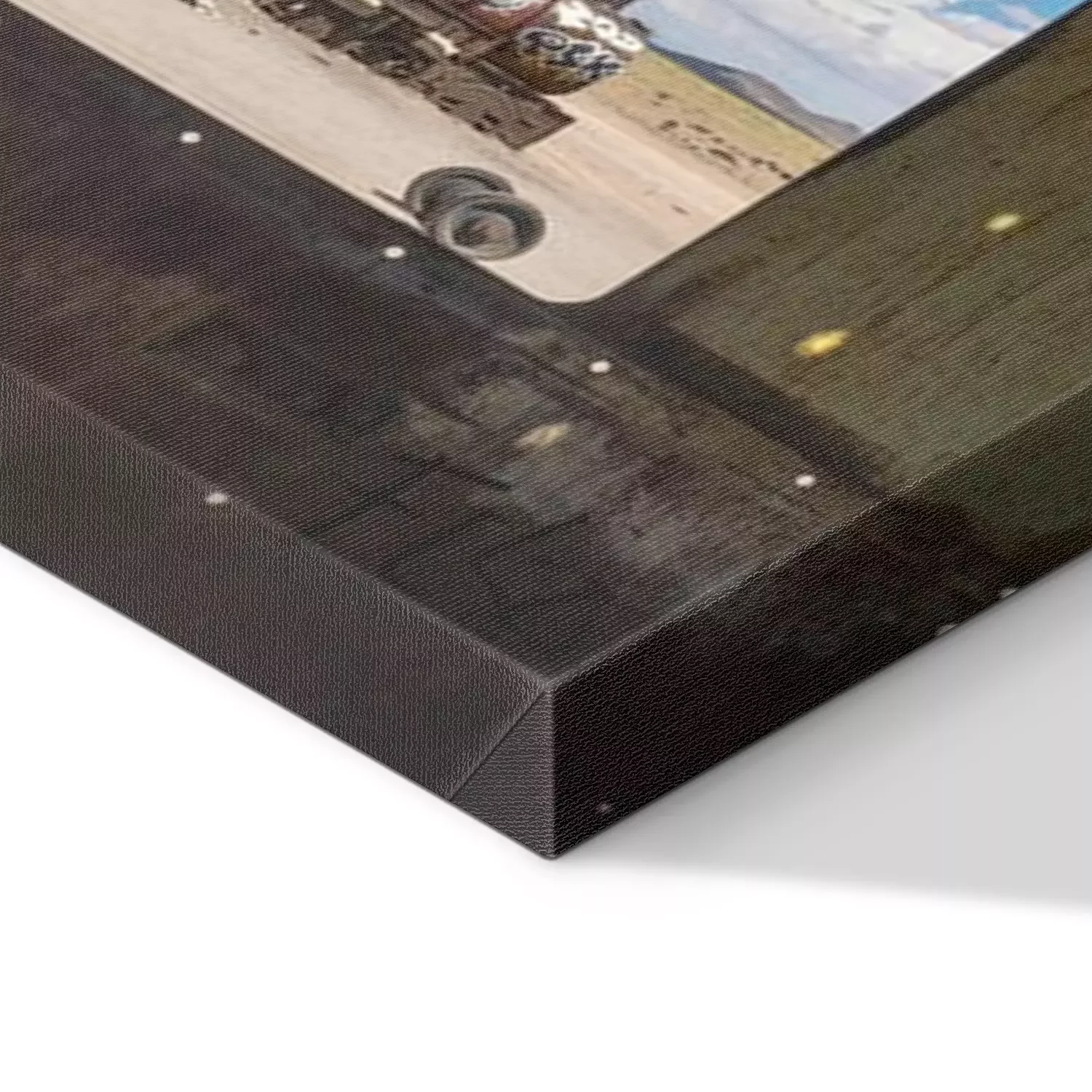 De print wordt aangebracht op hoogwaardig canvas dat op een schildersweefgetouw (spieraam) wordt gespannen. Omdat de print de zijranden bedekt, hoeft het ontwerp niet met een extra kader te worden omlijst. Wij raden ook composities aan die uit meerdere foto's bestaan en zo een coherente compositie vormen.