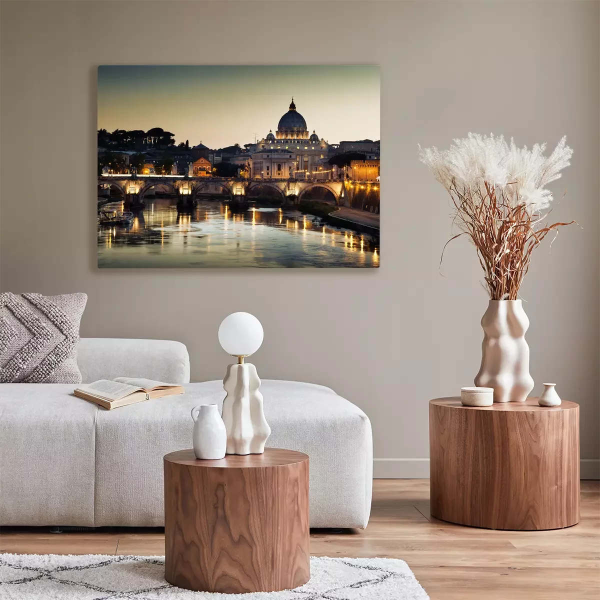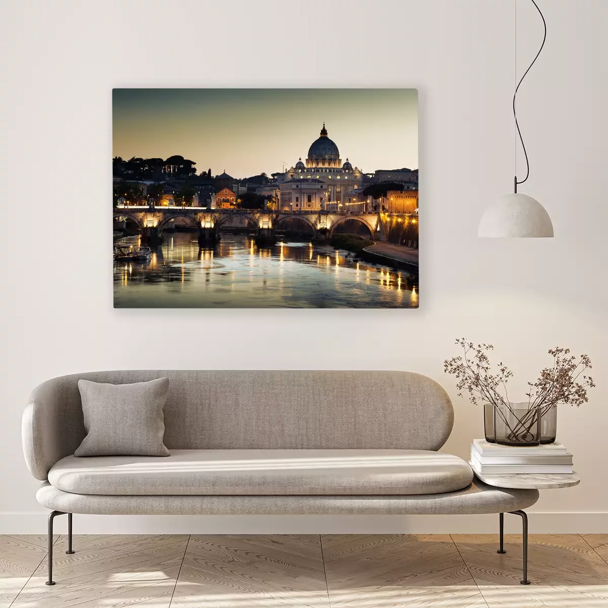 De print wordt aangebracht op hoogwaardig canvas dat op een schildersweefgetouw (spieraam) wordt gespannen. Omdat de print de zijranden bedekt, hoeft het ontwerp niet met een extra kader te worden omlijst. Wij raden ook composities aan die uit meerdere foto's bestaan en zo een coherente compositie vormen.