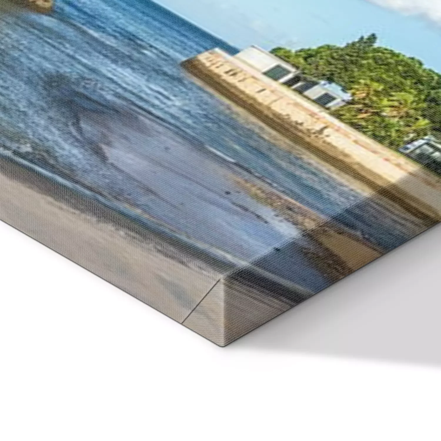 De print wordt aangebracht op hoogwaardig canvas dat op een schildersweefgetouw (spieraam) wordt gespannen. Omdat de print de zijranden bedekt, hoeft het ontwerp niet met een extra kader te worden omlijst. Wij raden ook composities aan die uit meerdere foto's bestaan en zo een coherente compositie vormen.