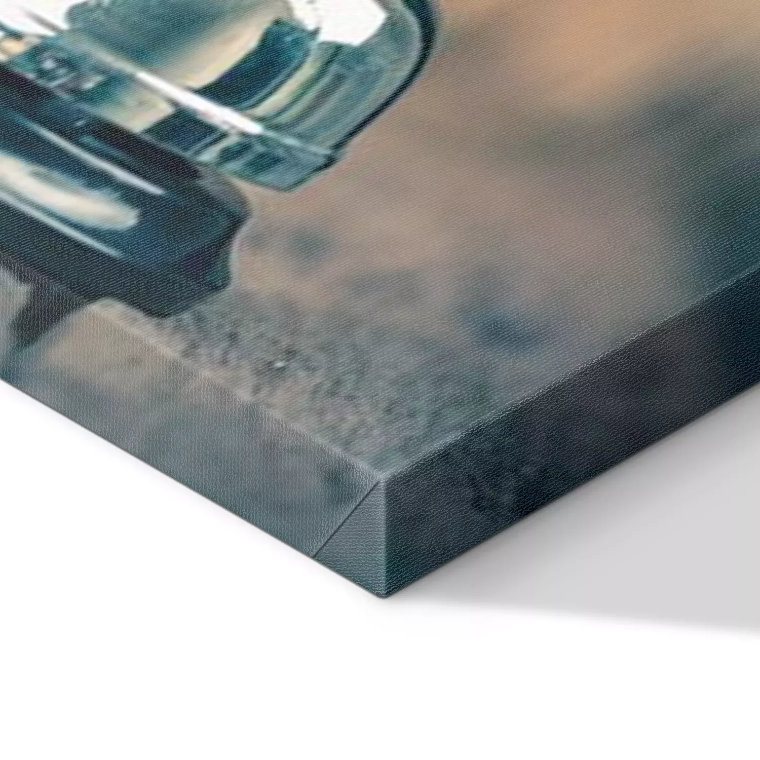 De print wordt aangebracht op hoogwaardig canvas dat op een schildersweefgetouw (spieraam) wordt gespannen. Omdat de print de zijranden bedekt, hoeft het ontwerp niet met een extra kader te worden omlijst. Wij raden ook composities aan die uit meerdere foto's bestaan en zo een coherente compositie vormen.