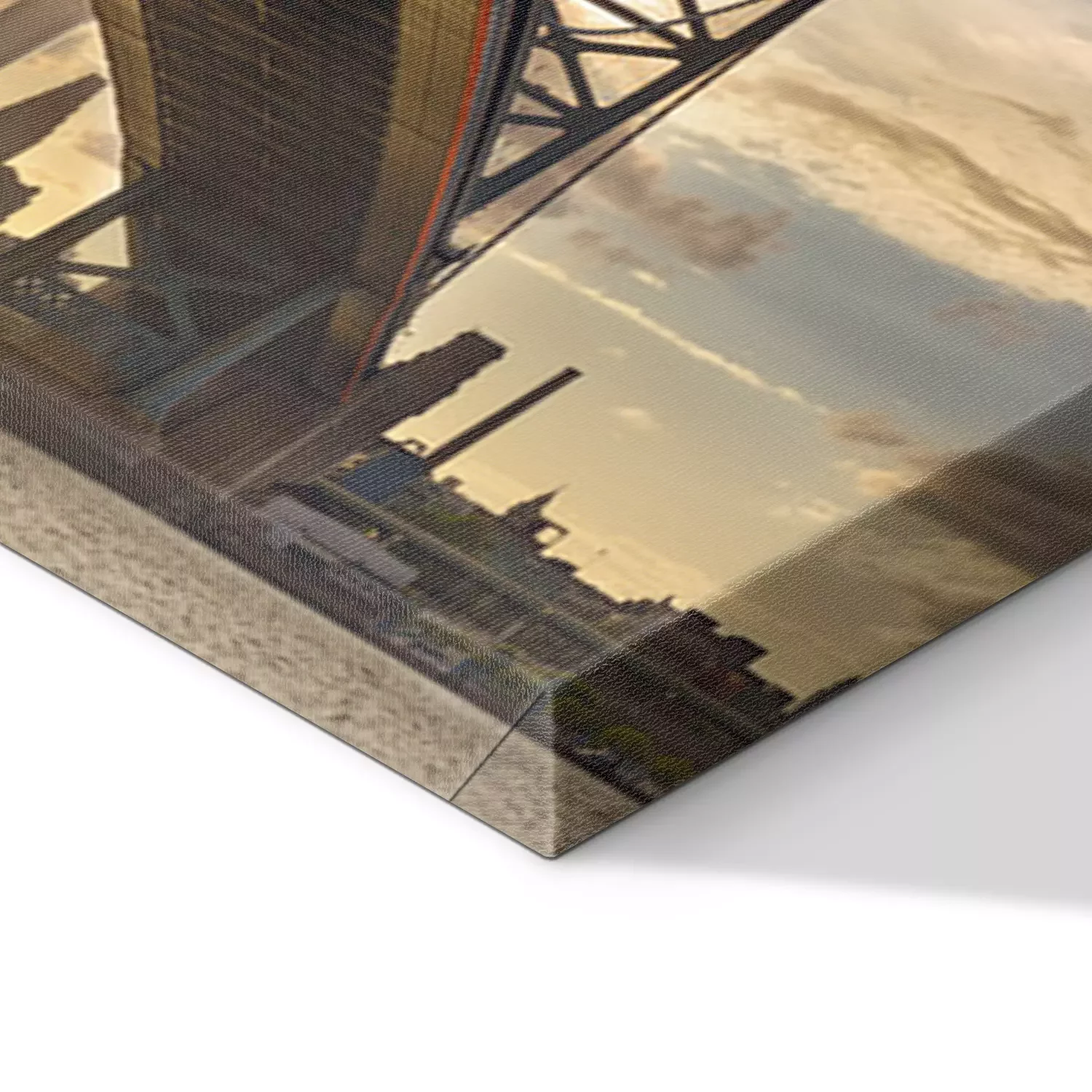 De print wordt aangebracht op hoogwaardig canvas dat op een schildersweefgetouw (spieraam) wordt gespannen. Omdat de print de zijranden bedekt, hoeft het ontwerp niet met een extra kader te worden omlijst. Wij raden ook composities aan die uit meerdere foto's bestaan en zo een coherente compositie vormen.