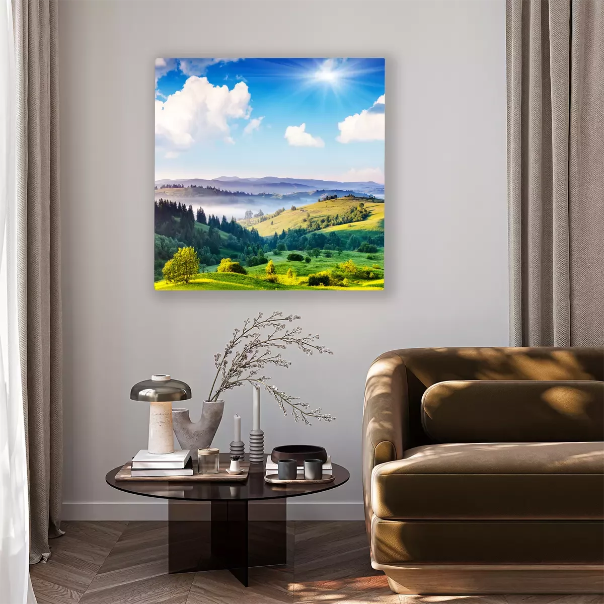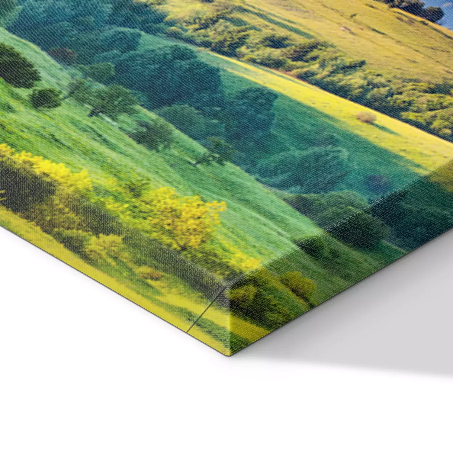 De print wordt aangebracht op hoogwaardig canvas dat op een schildersweefgetouw (spieraam) wordt gespannen. Omdat de print de zijranden bedekt, hoeft het ontwerp niet met een extra kader te worden omlijst. Wij raden ook composities aan die uit meerdere foto's bestaan en zo een coherente compositie vormen.