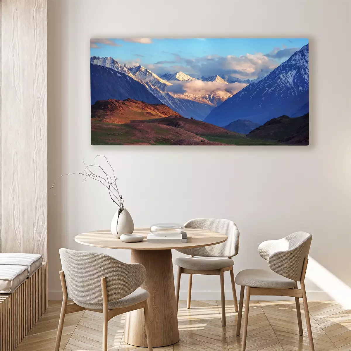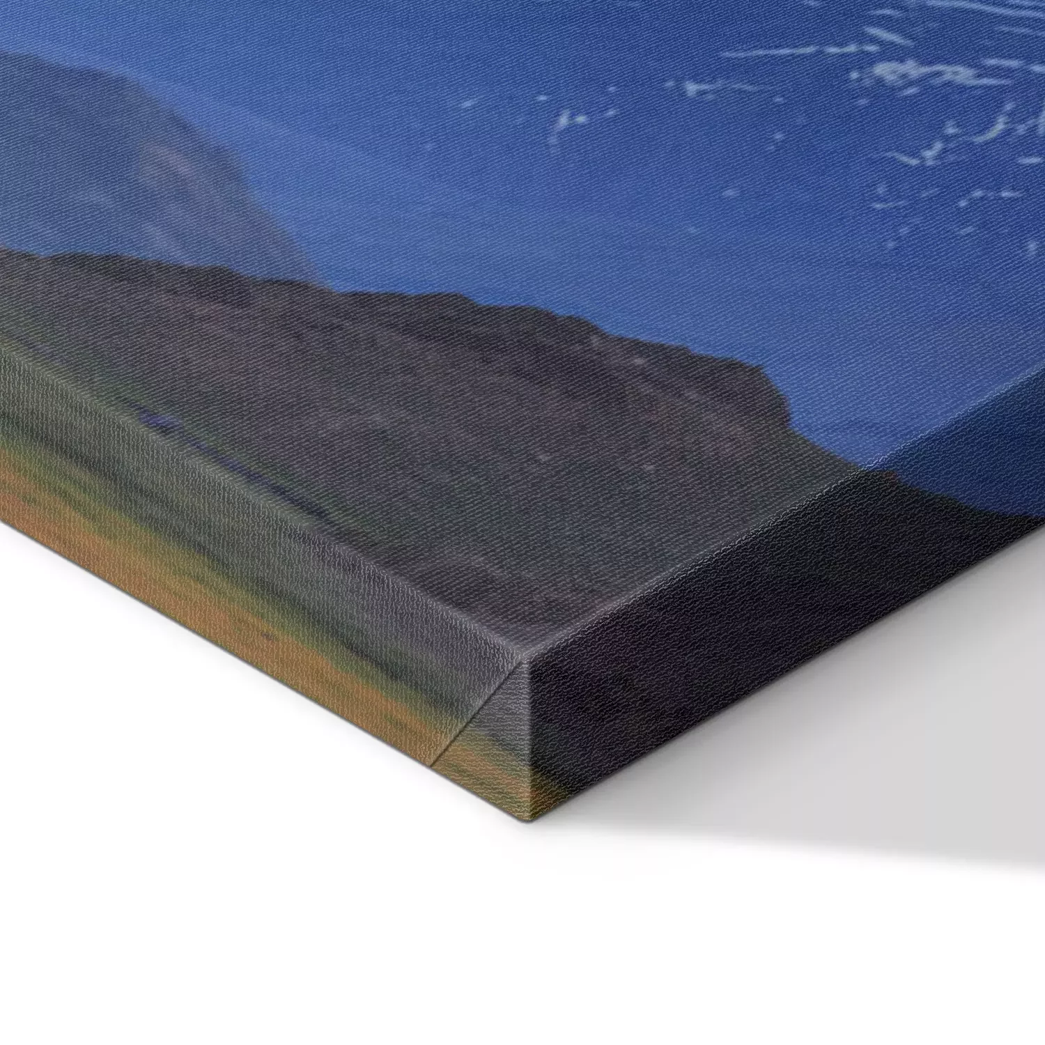 De print wordt aangebracht op hoogwaardig canvas dat op een schildersweefgetouw (spieraam) wordt gespannen. Omdat de print de zijranden bedekt, hoeft het ontwerp niet met een extra kader te worden omlijst. Wij raden ook composities aan die uit meerdere foto's bestaan en zo een coherente compositie vormen.