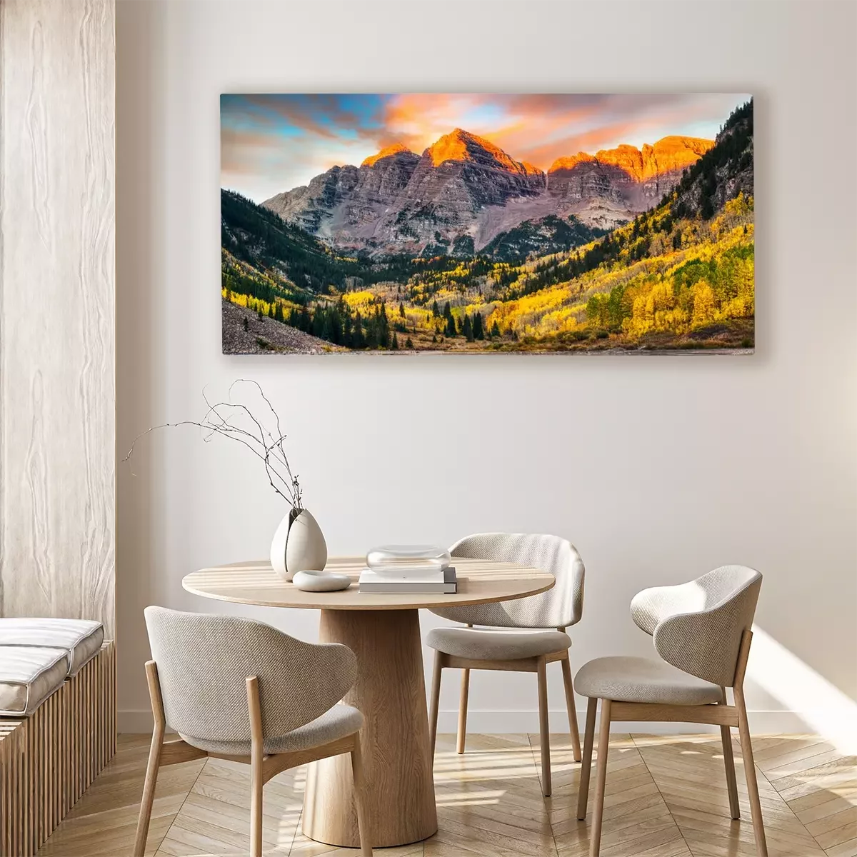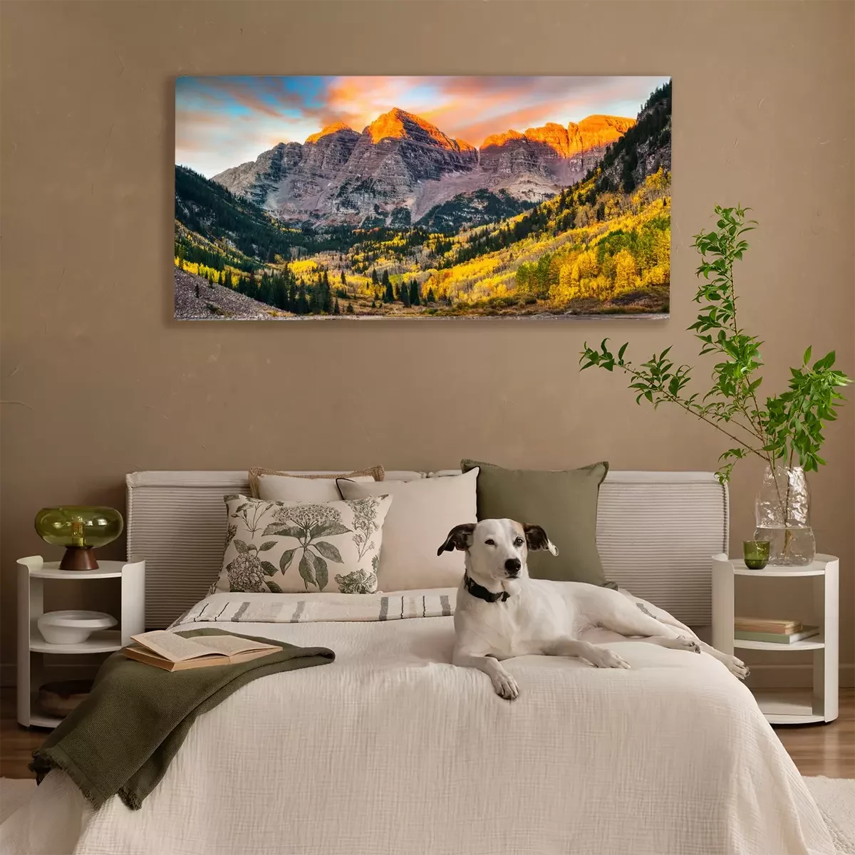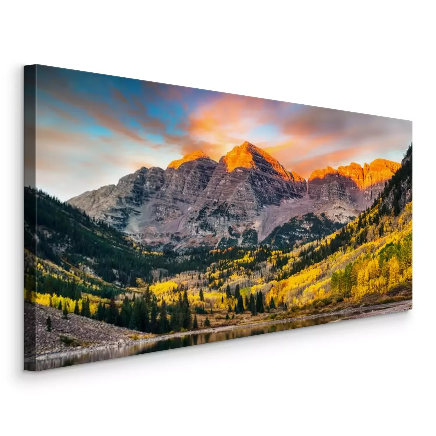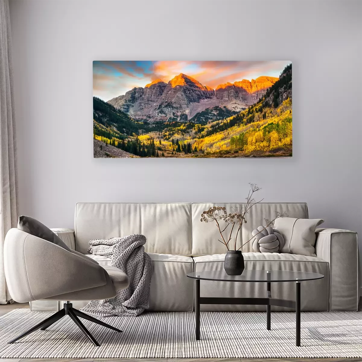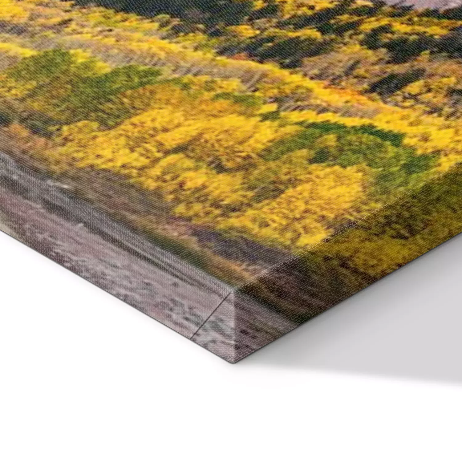 De print wordt aangebracht op hoogwaardig canvas dat op een schildersweefgetouw (spieraam) wordt gespannen. Omdat de print de zijranden bedekt, hoeft het ontwerp niet met een extra kader te worden omlijst. Wij raden ook composities aan die uit meerdere foto's bestaan en zo een coherente compositie vormen.