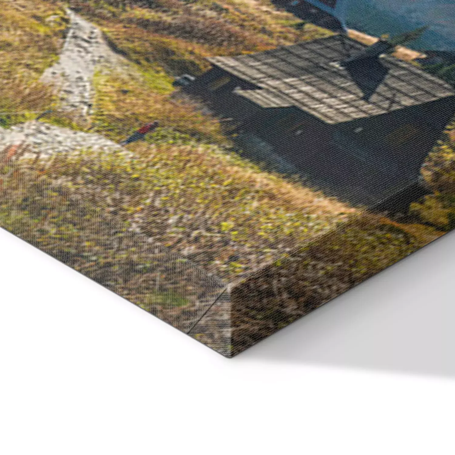 De print wordt aangebracht op hoogwaardig canvas dat op een schildersweefgetouw (spieraam) wordt gespannen. Omdat de print de zijranden bedekt, hoeft het ontwerp niet met een extra kader te worden omlijst. Wij raden ook composities aan die uit meerdere foto's bestaan en zo een coherente compositie vormen.
