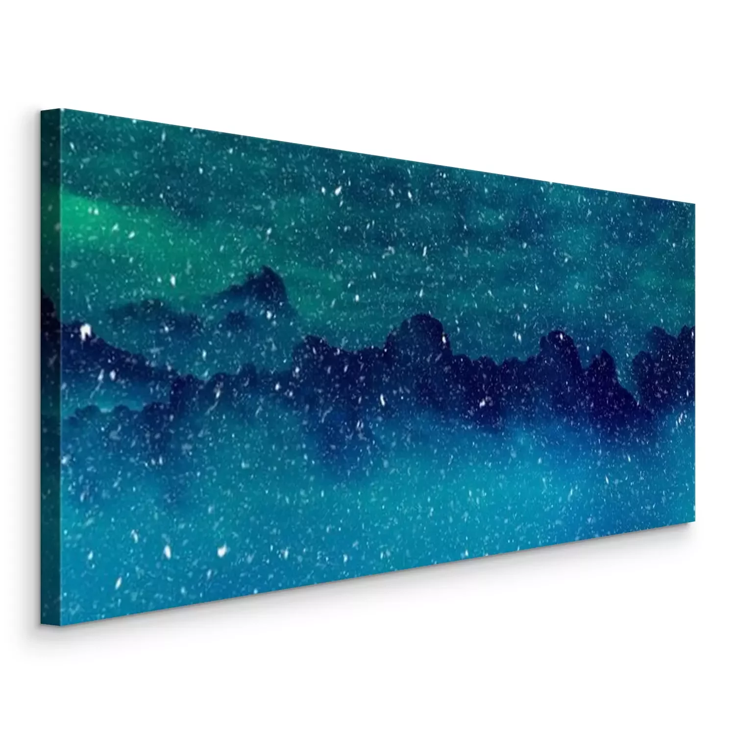 Canvas Bergen en pijnbomen in sneeuwval geïllustreerde winterlandschap