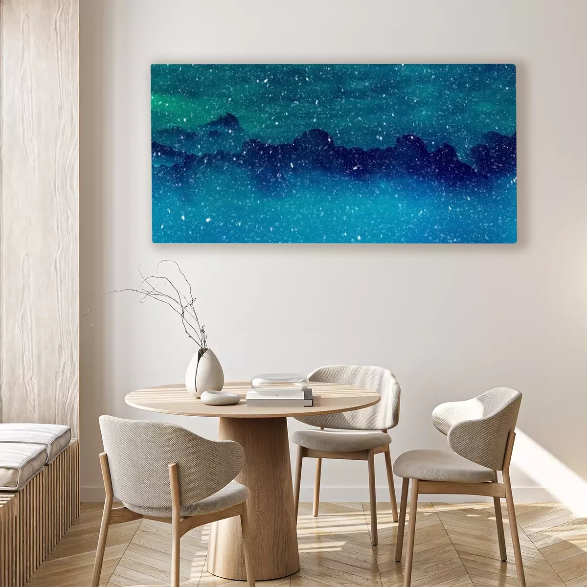 De print wordt aangebracht op hoogwaardig canvas dat op een schildersweefgetouw (spieraam) wordt gespannen. Omdat de print de zijranden bedekt, hoeft het ontwerp niet met een extra kader te worden omlijst. Wij raden ook composities aan die uit meerdere foto's bestaan en zo een coherente compositie vormen.