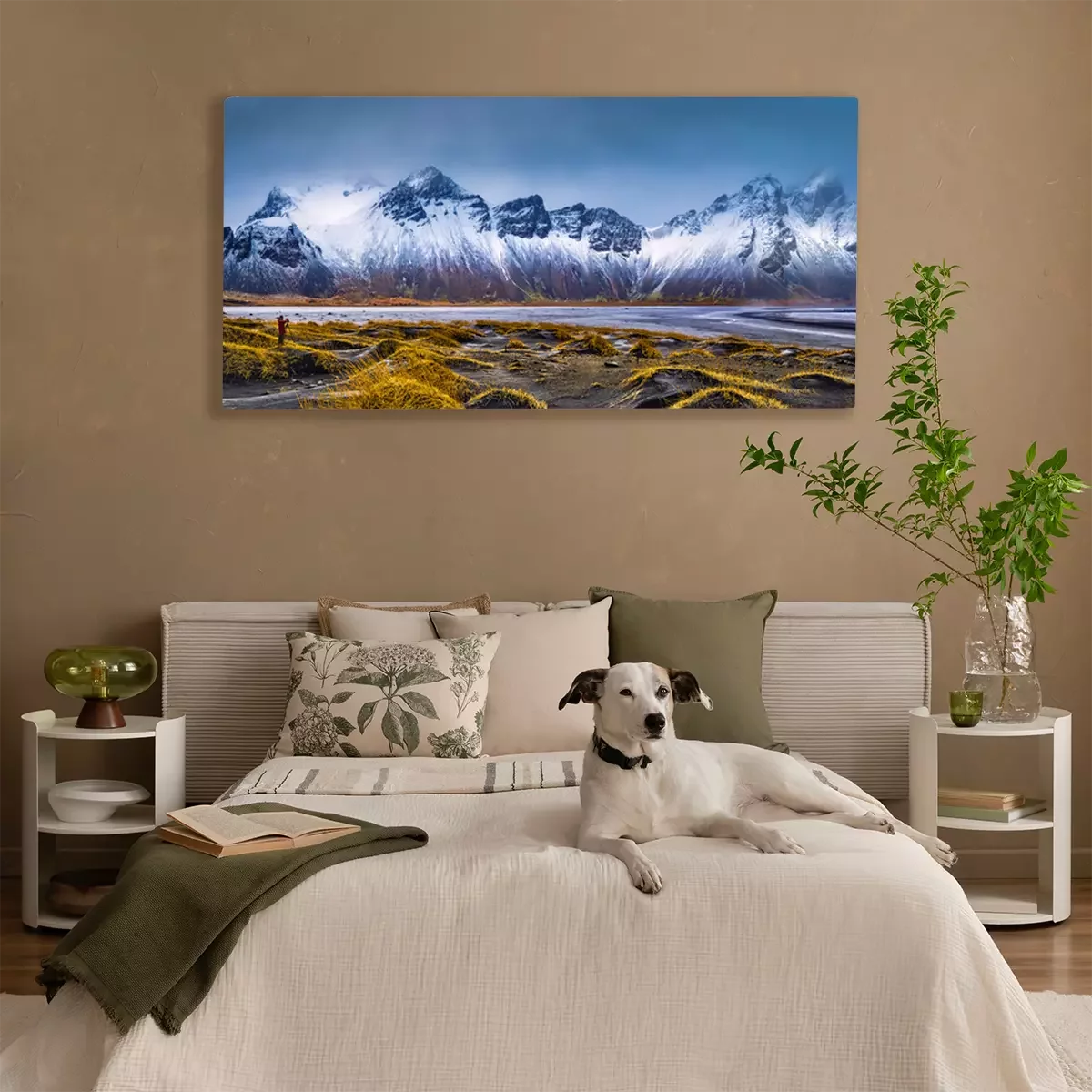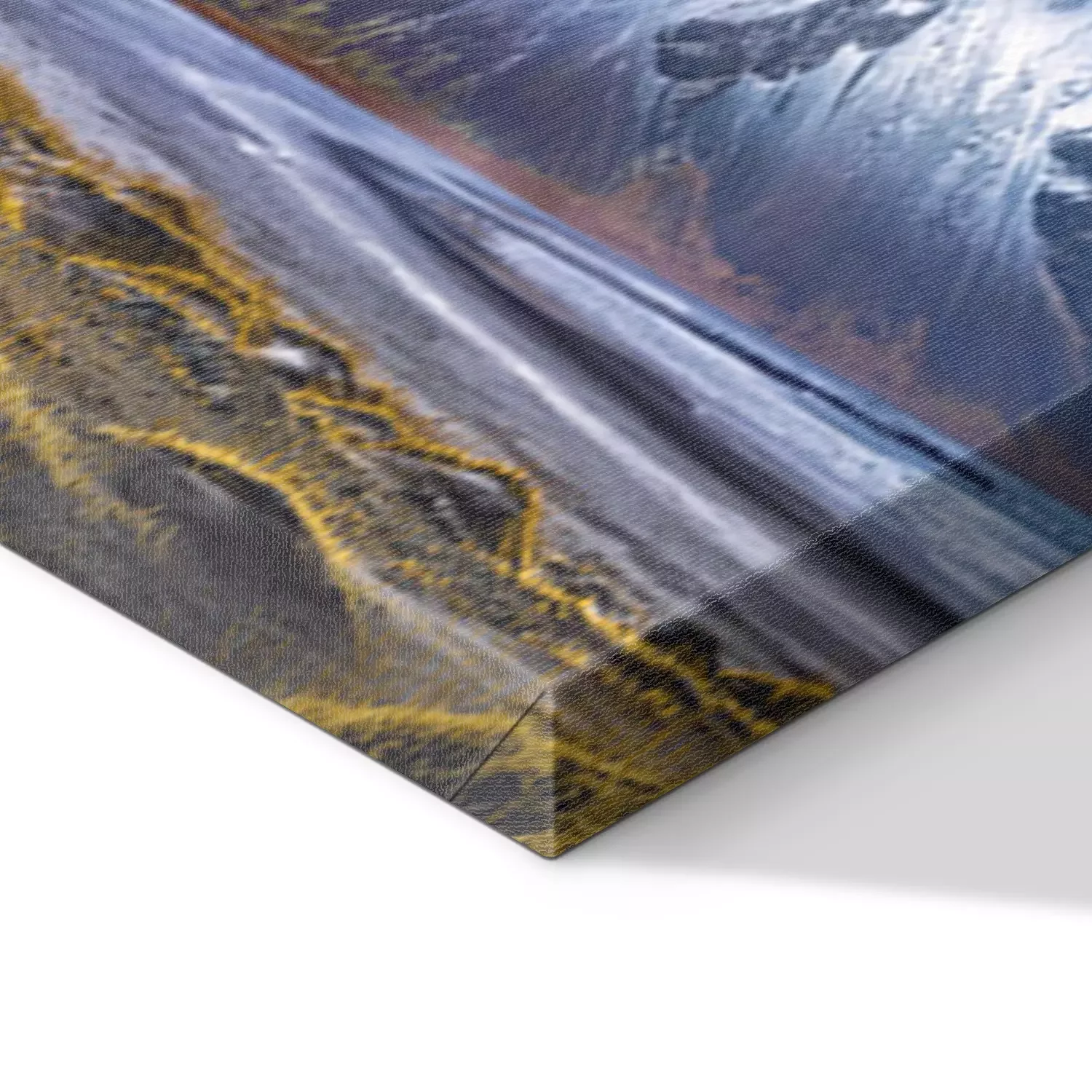 De print wordt aangebracht op hoogwaardig canvas dat op een schildersweefgetouw (spieraam) wordt gespannen. Omdat de print de zijranden bedekt, hoeft het ontwerp niet met een extra kader te worden omlijst. Wij raden ook composities aan die uit meerdere foto's bestaan en zo een coherente compositie vormen.