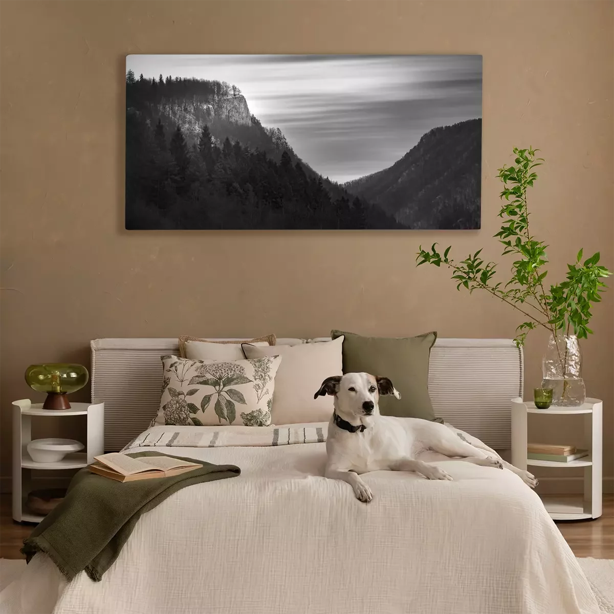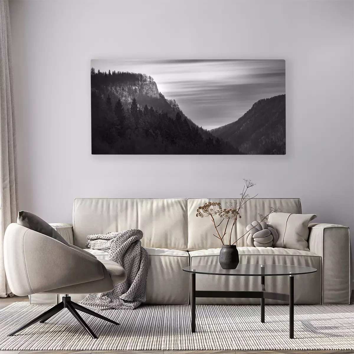 De print wordt aangebracht op hoogwaardig canvas dat op een schildersweefgetouw (spieraam) wordt gespannen. Omdat de print de zijranden bedekt, hoeft het ontwerp niet met een extra kader te worden omlijst. Wij raden ook composities aan die uit meerdere foto's bestaan en zo een coherente compositie vormen.