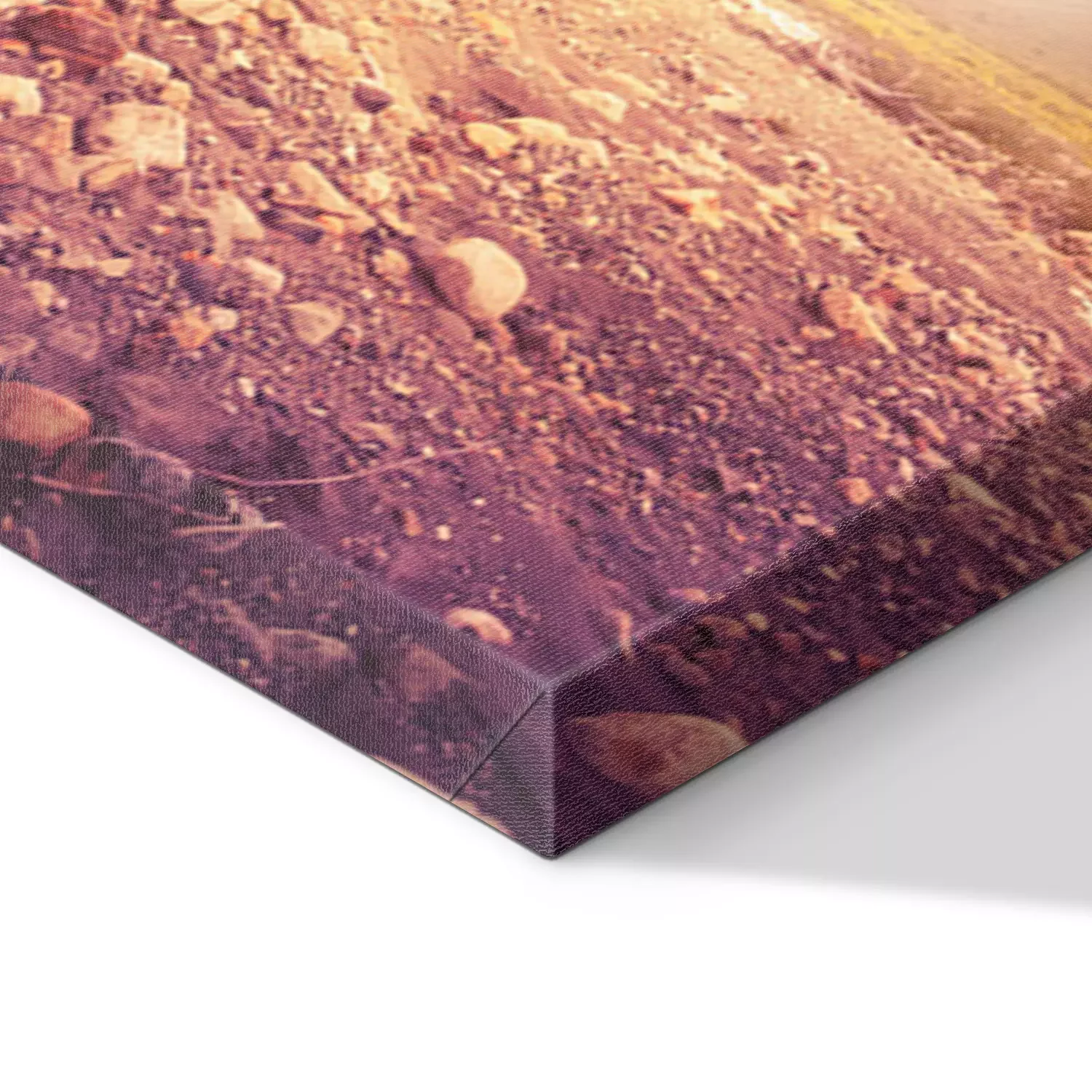 De print wordt aangebracht op hoogwaardig canvas dat op een schildersweefgetouw (spieraam) wordt gespannen. Omdat de print de zijranden bedekt, hoeft het ontwerp niet met een extra kader te worden omlijst. Wij raden ook composities aan die uit meerdere foto's bestaan en zo een coherente compositie vormen.