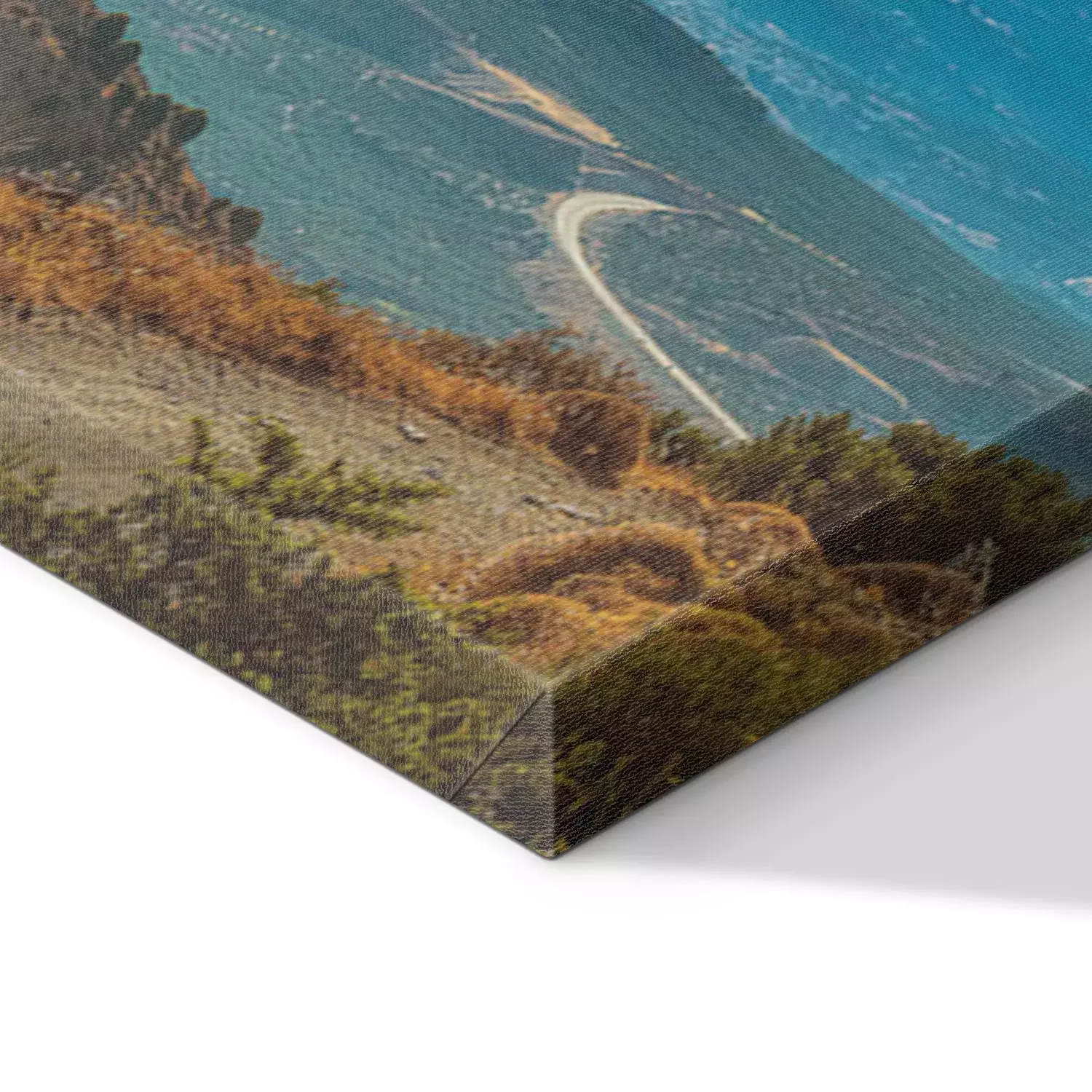 De print wordt aangebracht op hoogwaardig canvas dat op een schildersweefgetouw (spieraam) wordt gespannen. Omdat de print de zijranden bedekt, hoeft het ontwerp niet met een extra kader te worden omlijst. Wij raden ook composities aan die uit meerdere foto's bestaan en zo een coherente compositie vormen.