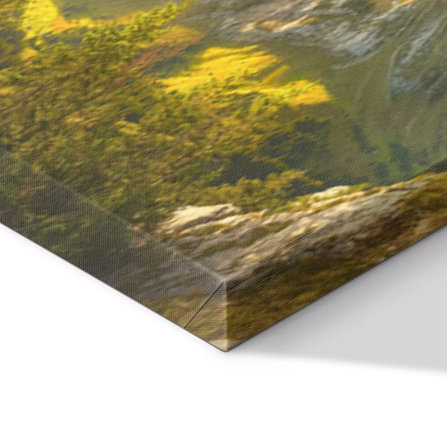 De print wordt aangebracht op hoogwaardig canvas dat op een schildersweefgetouw (spieraam) wordt gespannen. Omdat de print de zijranden bedekt, hoeft het ontwerp niet met een extra kader te worden omlijst. Wij raden ook composities aan die uit meerdere foto's bestaan en zo een coherente compositie vormen.