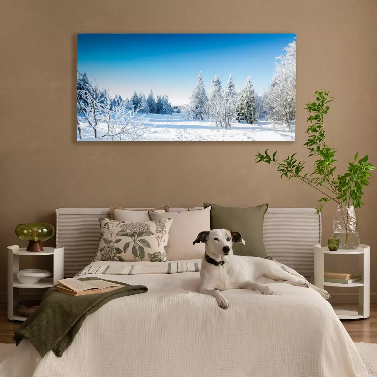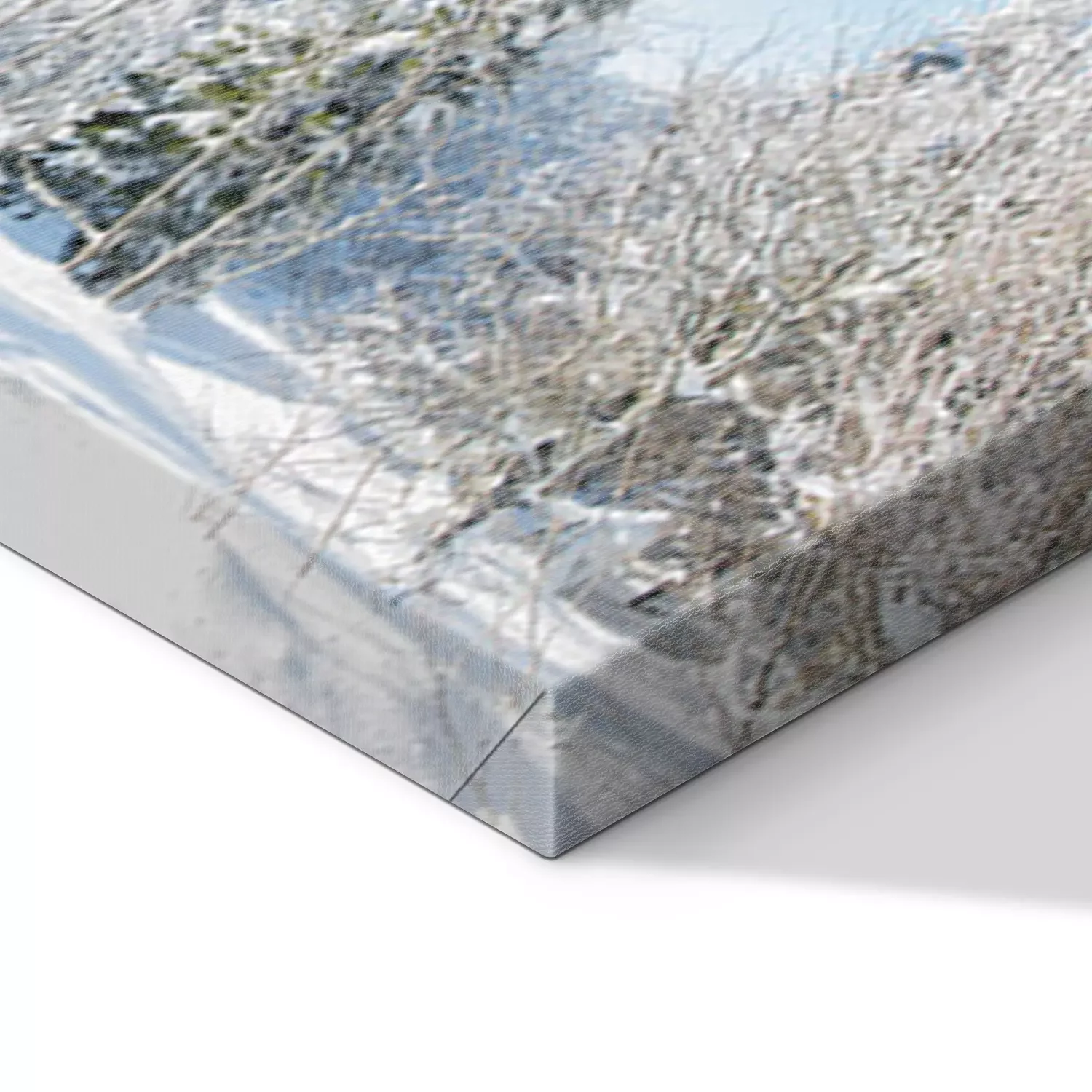 De print wordt aangebracht op hoogwaardig canvas dat op een schildersweefgetouw (spieraam) wordt gespannen. Omdat de print de zijranden bedekt, hoeft het ontwerp niet met een extra kader te worden omlijst. Wij raden ook composities aan die uit meerdere foto's bestaan en zo een coherente compositie vormen.