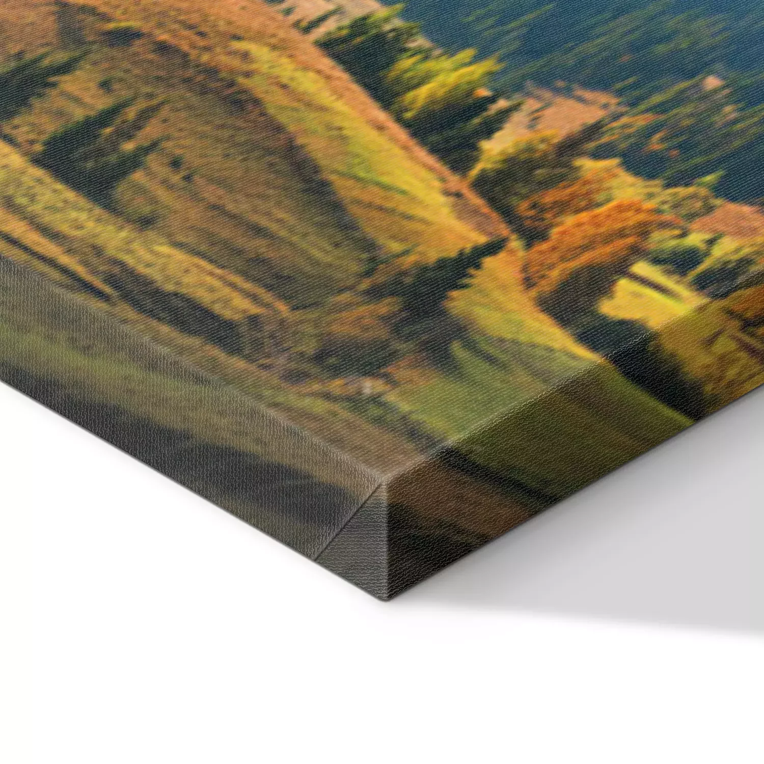 De print wordt aangebracht op hoogwaardig canvas dat op een schildersweefgetouw (spieraam) wordt gespannen. Omdat de print de zijranden bedekt, hoeft het ontwerp niet met een extra kader te worden omlijst. Wij raden ook composities aan die uit meerdere foto's bestaan en zo een coherente compositie vormen.