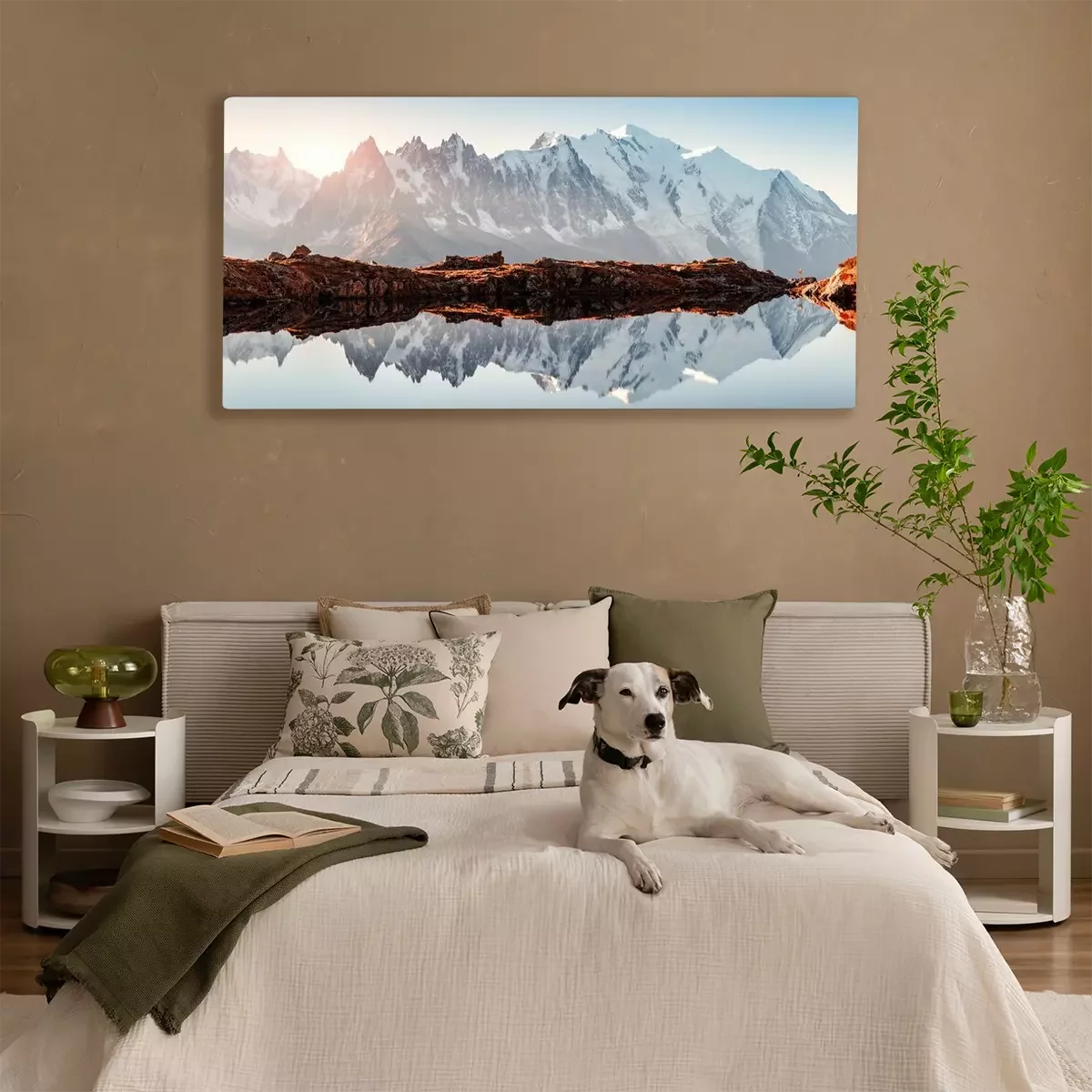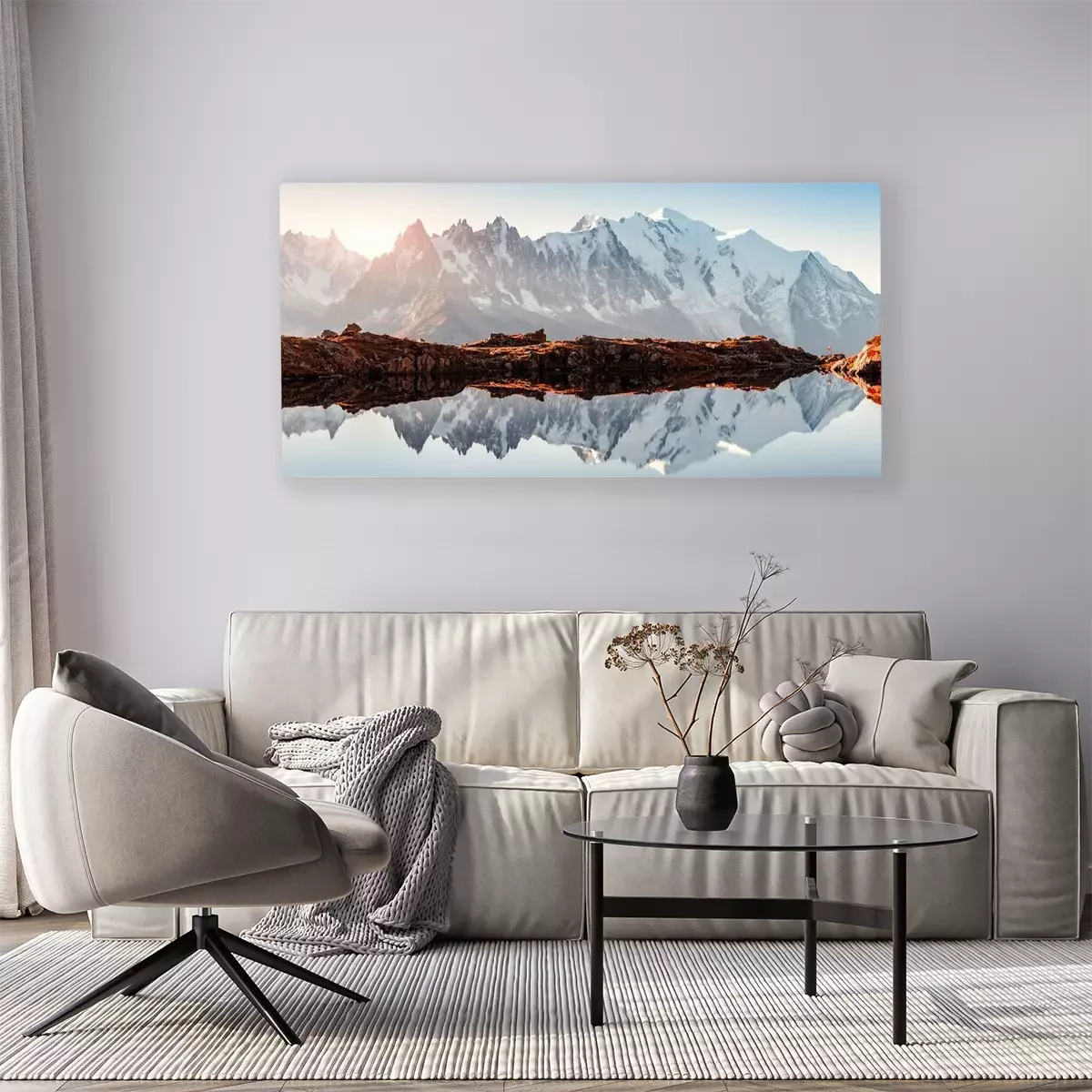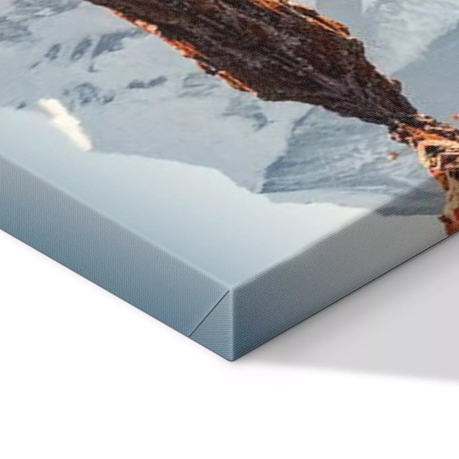 De print wordt aangebracht op hoogwaardig canvas dat op een schildersweefgetouw (spieraam) wordt gespannen. Omdat de print de zijranden bedekt, hoeft het ontwerp niet met een extra kader te worden omlijst. Wij raden ook composities aan die uit meerdere foto's bestaan en zo een coherente compositie vormen.