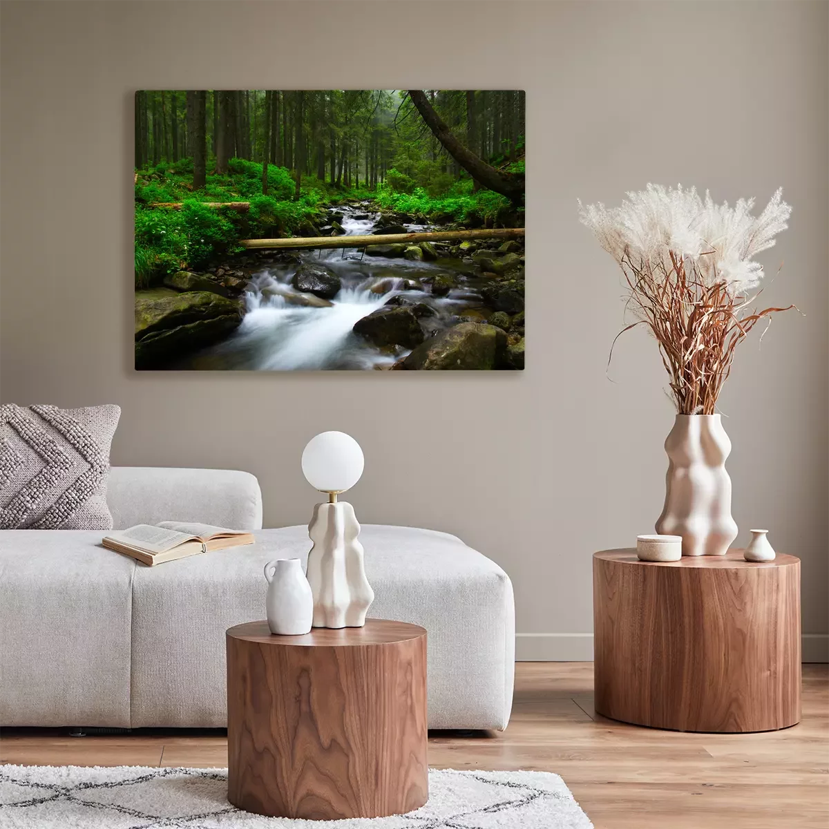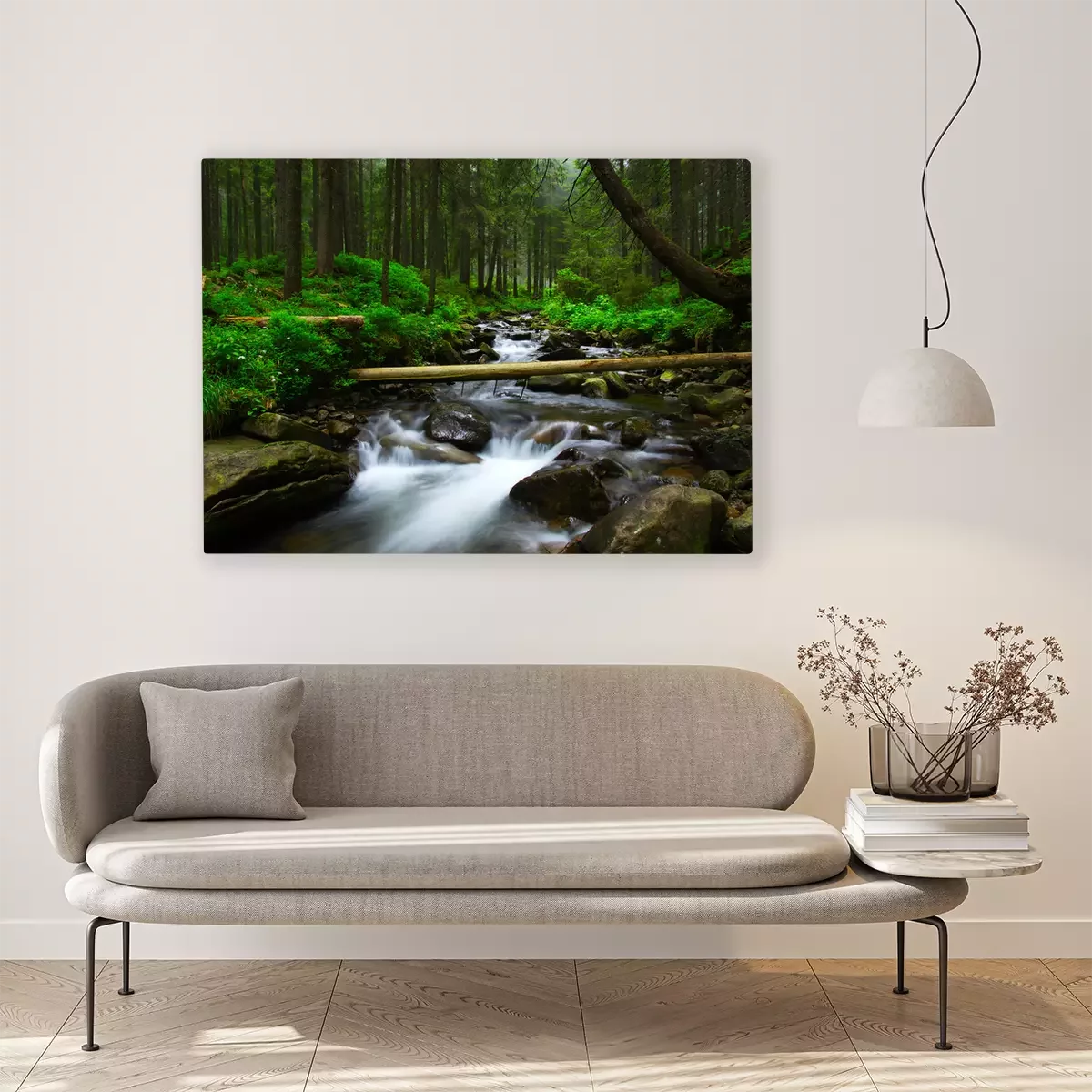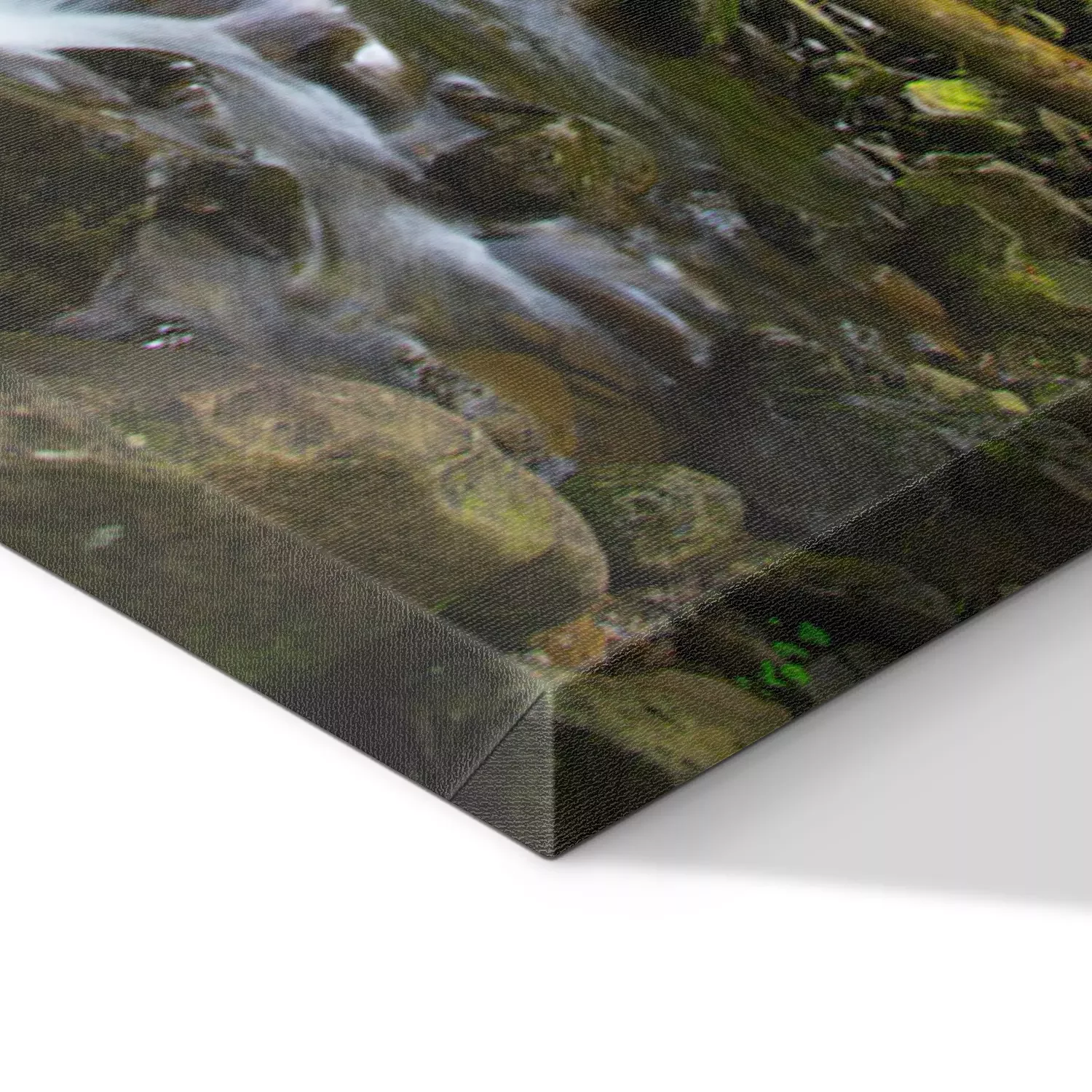 De print wordt aangebracht op hoogwaardig canvas dat op een schildersweefgetouw (spieraam) wordt gespannen. Omdat de print de zijranden bedekt, hoeft het ontwerp niet met een extra kader te worden omlijst. Wij raden ook composities aan die uit meerdere foto's bestaan en zo een coherente compositie vormen.
