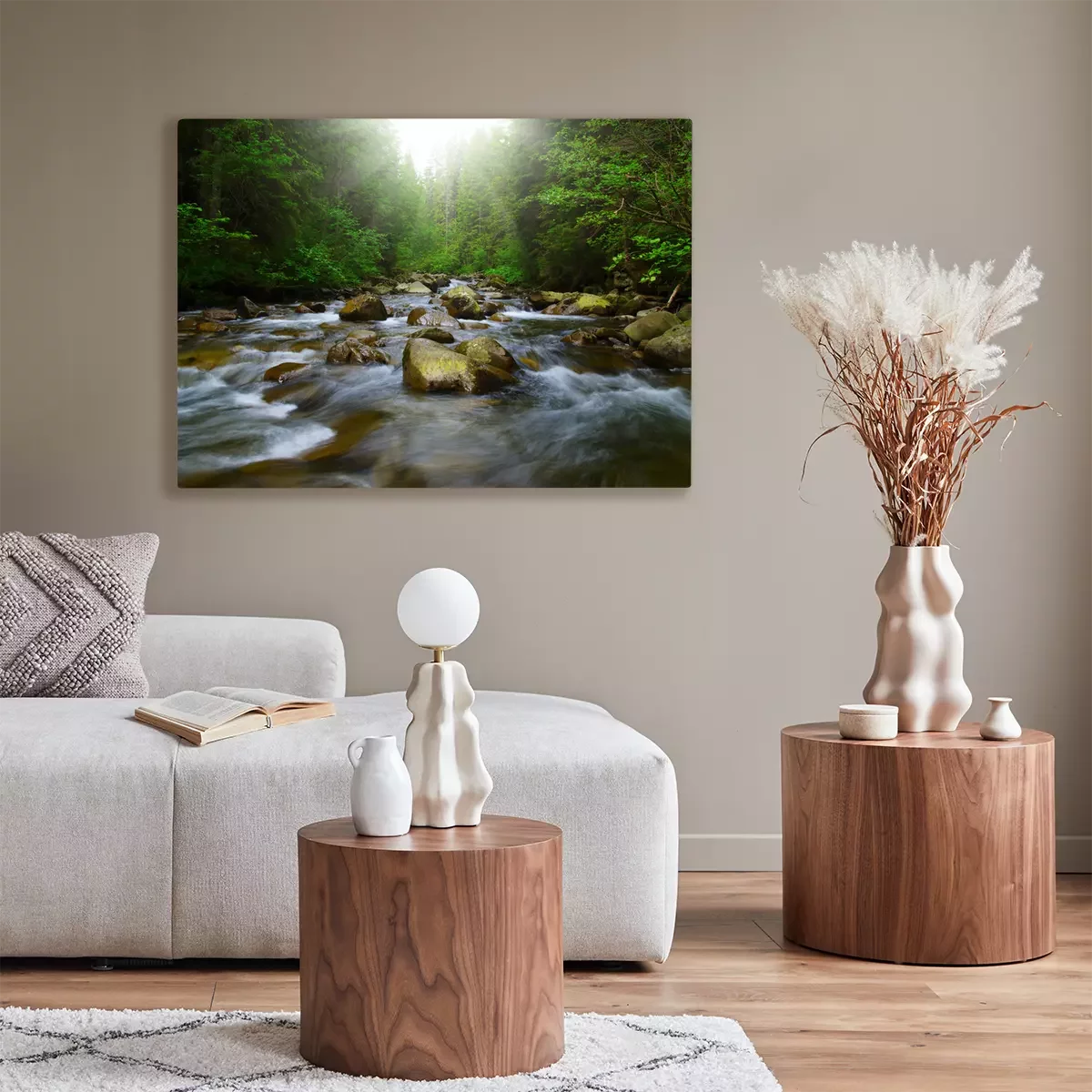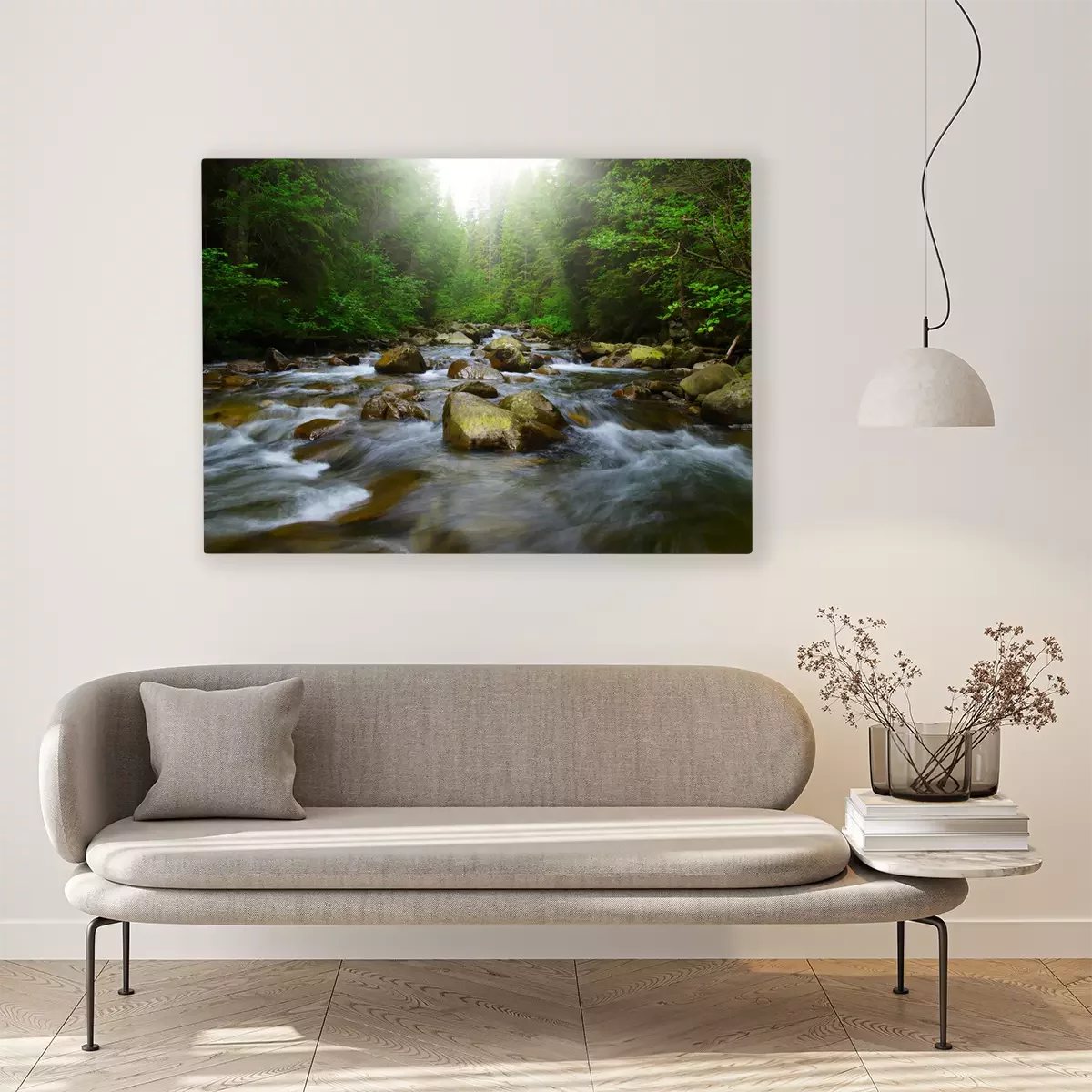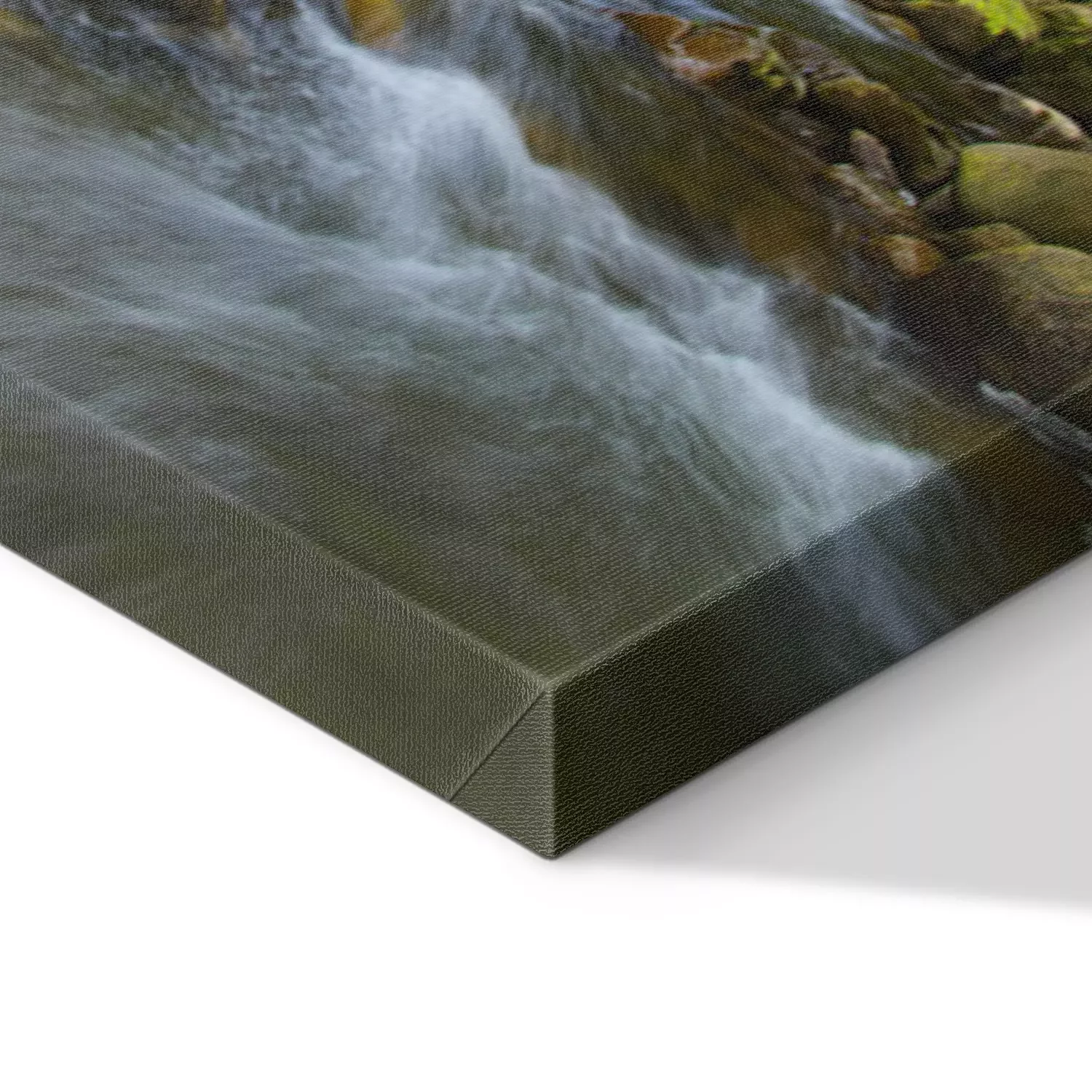 De print wordt aangebracht op hoogwaardig canvas dat op een schildersweefgetouw (spieraam) wordt gespannen. Omdat de print de zijranden bedekt, hoeft het ontwerp niet met een extra kader te worden omlijst. Wij raden ook composities aan die uit meerdere foto's bestaan en zo een coherente compositie vormen.