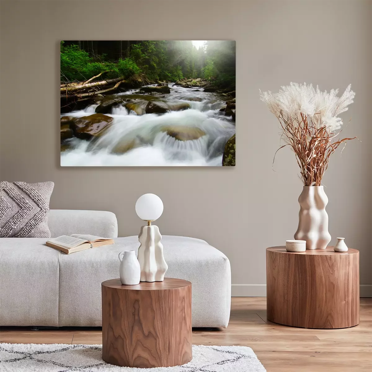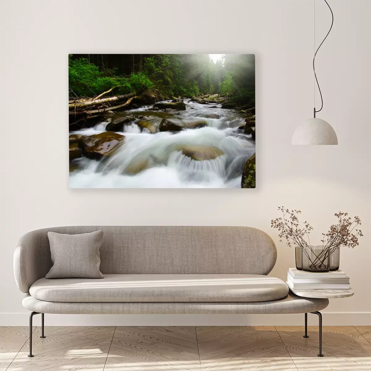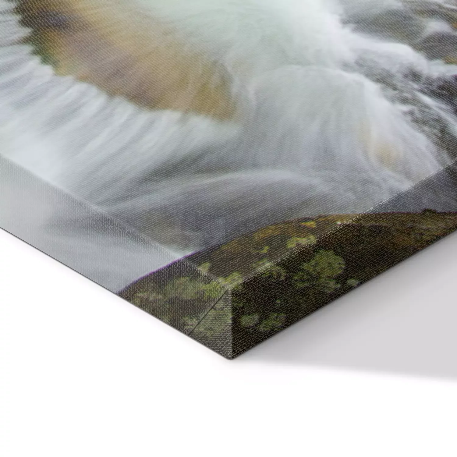 De print wordt aangebracht op hoogwaardig canvas dat op een schildersweefgetouw (spieraam) wordt gespannen. Omdat de print de zijranden bedekt, hoeft het ontwerp niet met een extra kader te worden omlijst. Wij raden ook composities aan die uit meerdere foto's bestaan en zo een coherente compositie vormen.