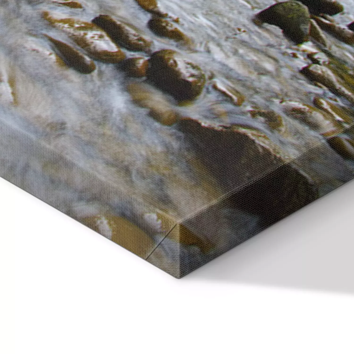 De print wordt aangebracht op hoogwaardig canvas dat op een schildersweefgetouw (spieraam) wordt gespannen. Omdat de print de zijranden bedekt, hoeft het ontwerp niet met een extra kader te worden omlijst. Wij raden ook composities aan die uit meerdere foto's bestaan en zo een coherente compositie vormen.
