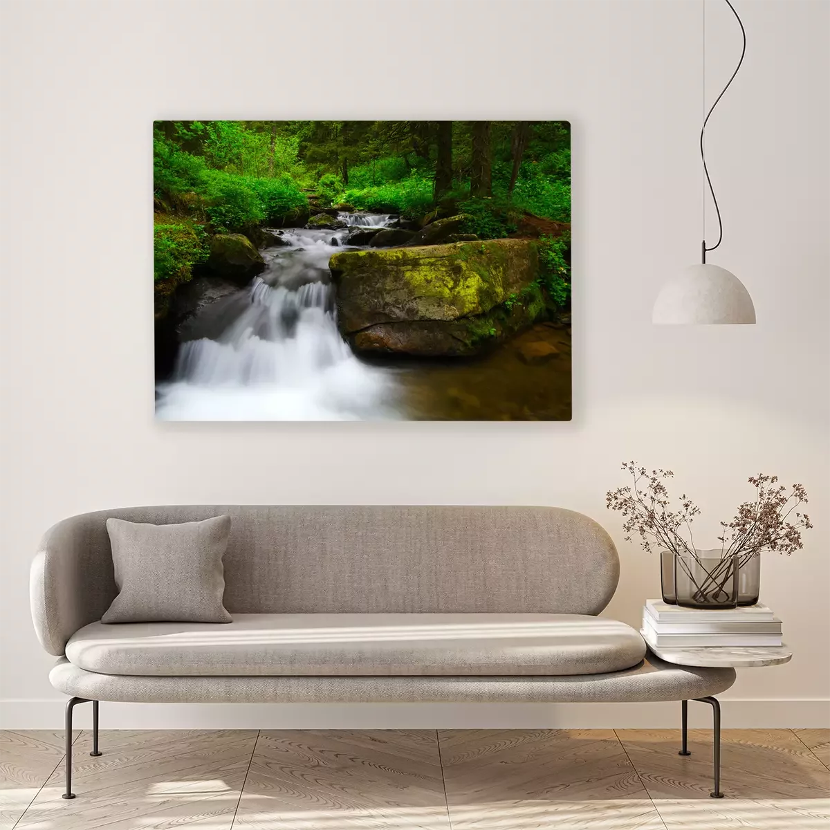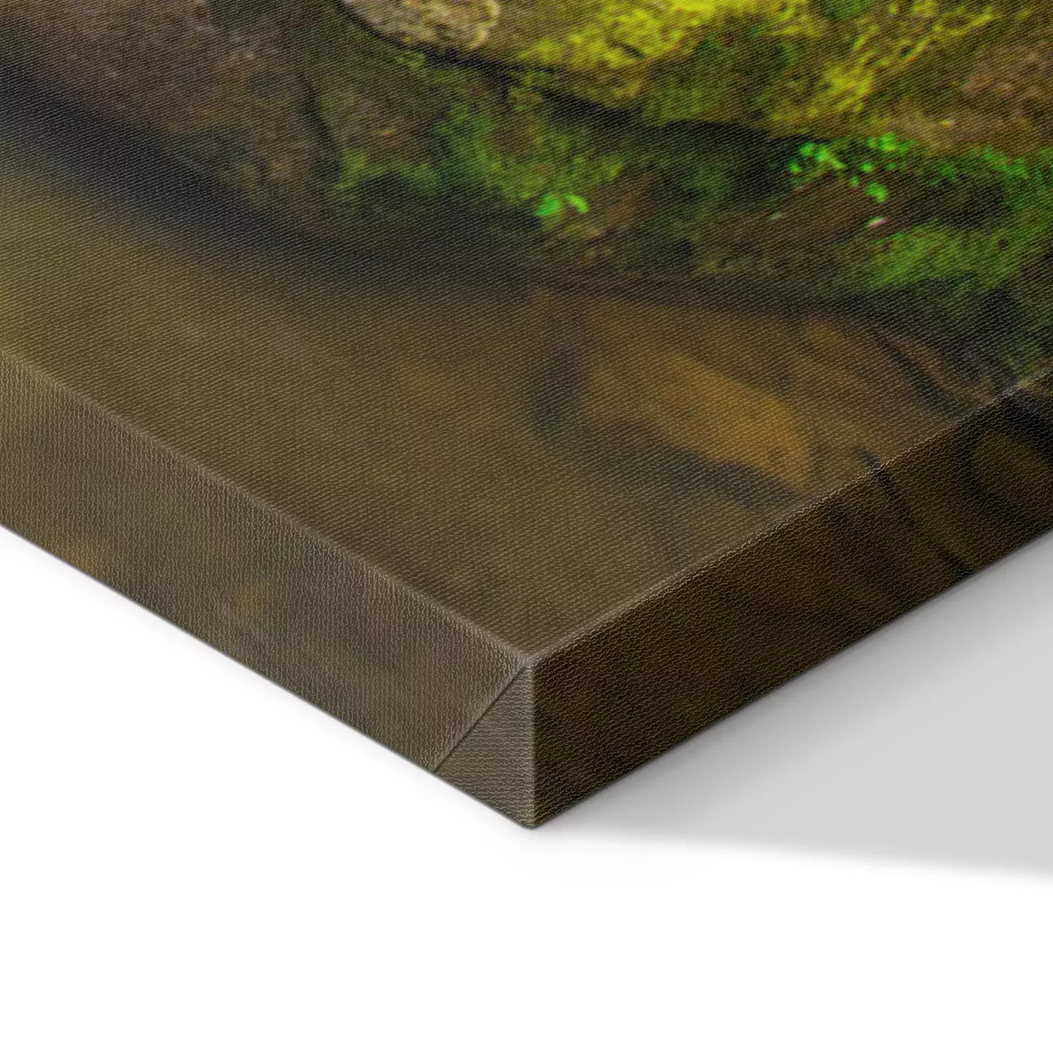 De print wordt aangebracht op hoogwaardig canvas dat op een schildersweefgetouw (spieraam) wordt gespannen. Omdat de print de zijranden bedekt, hoeft het ontwerp niet met een extra kader te worden omlijst. Wij raden ook composities aan die uit meerdere foto's bestaan en zo een coherente compositie vormen.