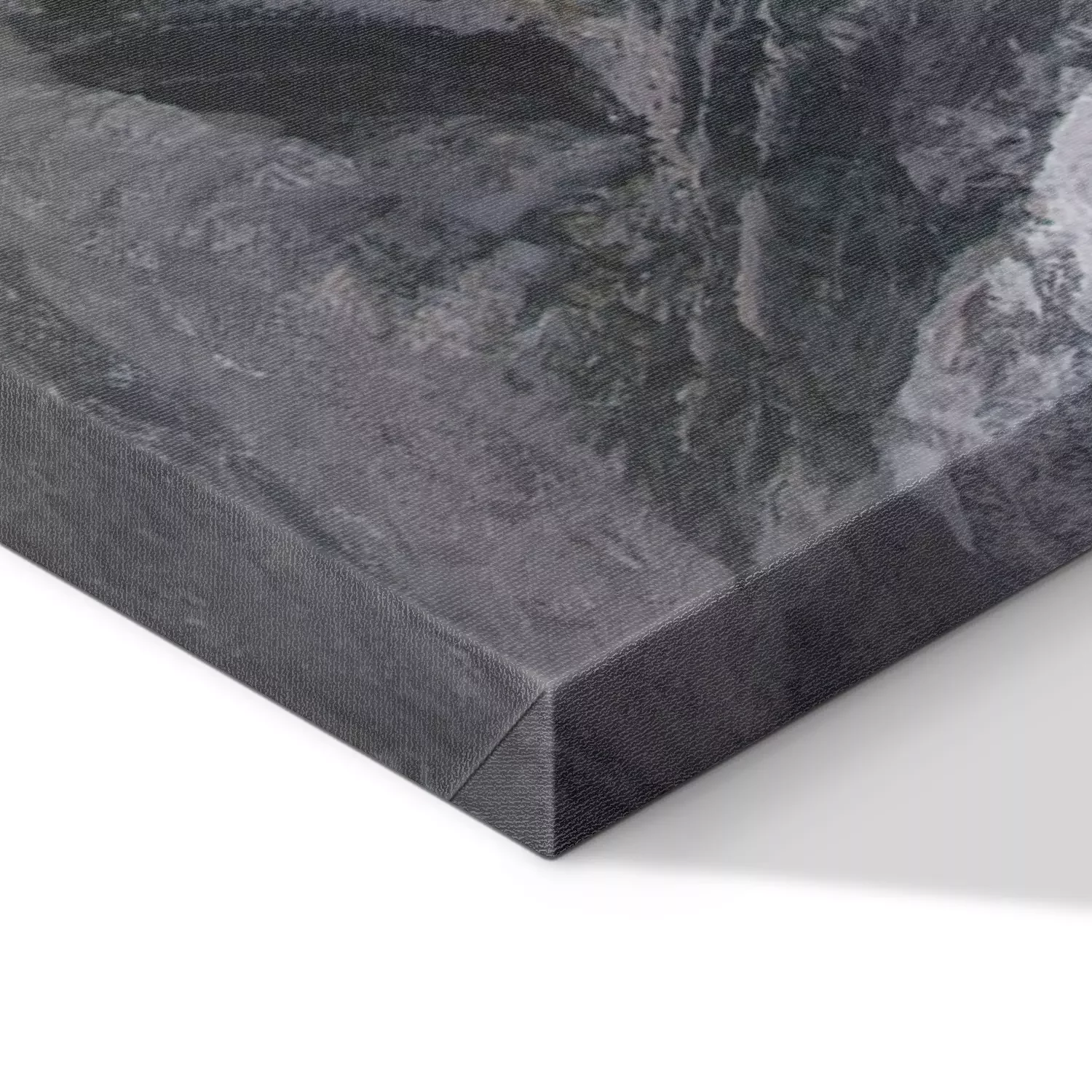 De print wordt aangebracht op hoogwaardig canvas dat op een schildersweefgetouw (spieraam) wordt gespannen. Omdat de print de zijranden bedekt, hoeft het ontwerp niet met een extra kader te worden omlijst. Wij raden ook composities aan die uit meerdere foto's bestaan en zo een coherente compositie vormen.