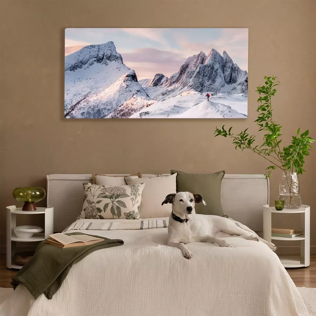 De print wordt aangebracht op hoogwaardig canvas dat op een schildersweefgetouw (spieraam) wordt gespannen. Omdat de print de zijranden bedekt, hoeft het ontwerp niet met een extra kader te worden omlijst. Wij raden ook composities aan die uit meerdere foto's bestaan en zo een coherente compositie vormen.