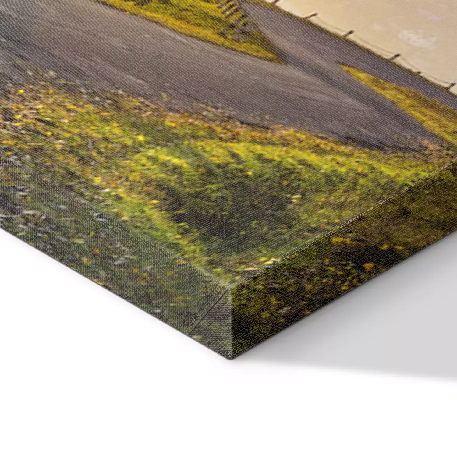 De print wordt aangebracht op hoogwaardig canvas dat op een schildersweefgetouw (spieraam) wordt gespannen. Omdat de print de zijranden bedekt, hoeft het ontwerp niet met een extra kader te worden omlijst. Wij raden ook composities aan die uit meerdere foto's bestaan en zo een coherente compositie vormen.