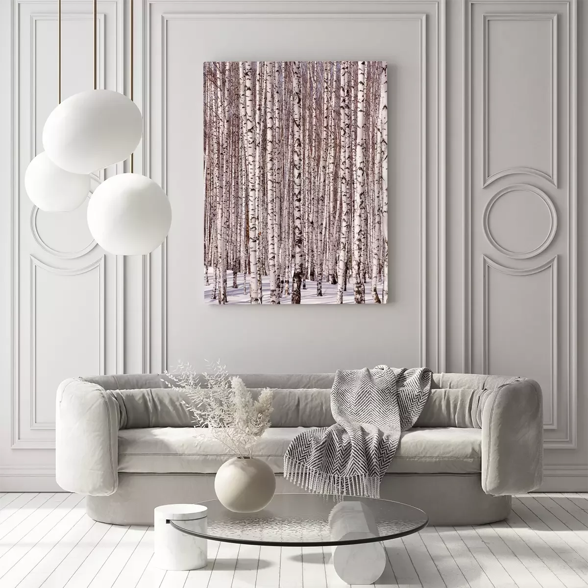 De print wordt aangebracht op hoogwaardig canvas dat op een schildersweefgetouw (spieraam) wordt gespannen. Omdat de print de zijranden bedekt, hoeft het ontwerp niet met een extra kader te worden omlijst. Wij raden ook composities aan die uit meerdere foto's bestaan en zo een coherente compositie vormen.