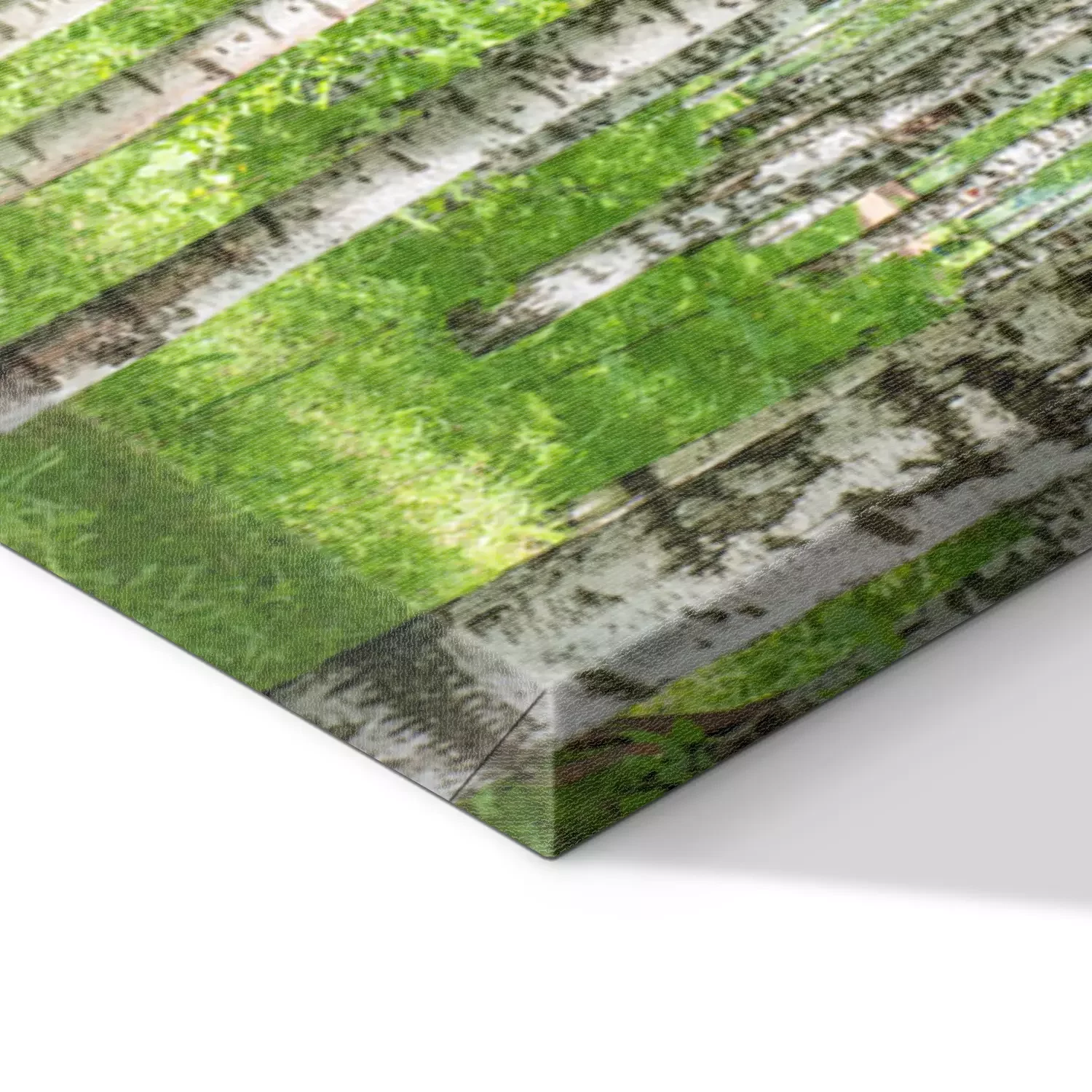 De print wordt aangebracht op hoogwaardig canvas dat op een schildersweefgetouw (spieraam) wordt gespannen. Omdat de print de zijranden bedekt, hoeft het ontwerp niet met een extra kader te worden omlijst. Wij raden ook composities aan die uit meerdere foto's bestaan en zo een coherente compositie vormen.