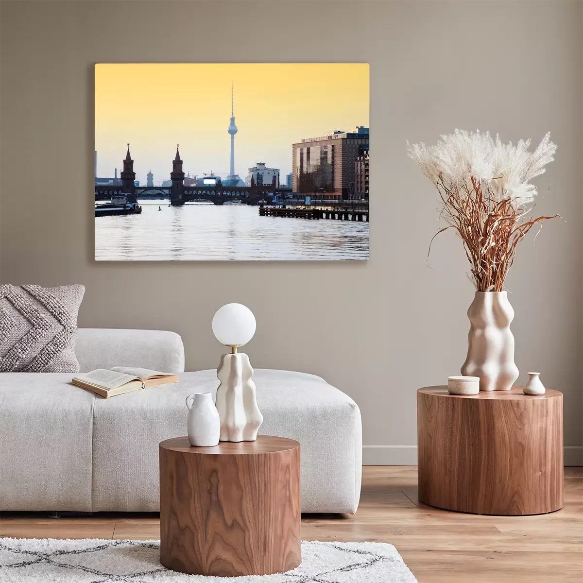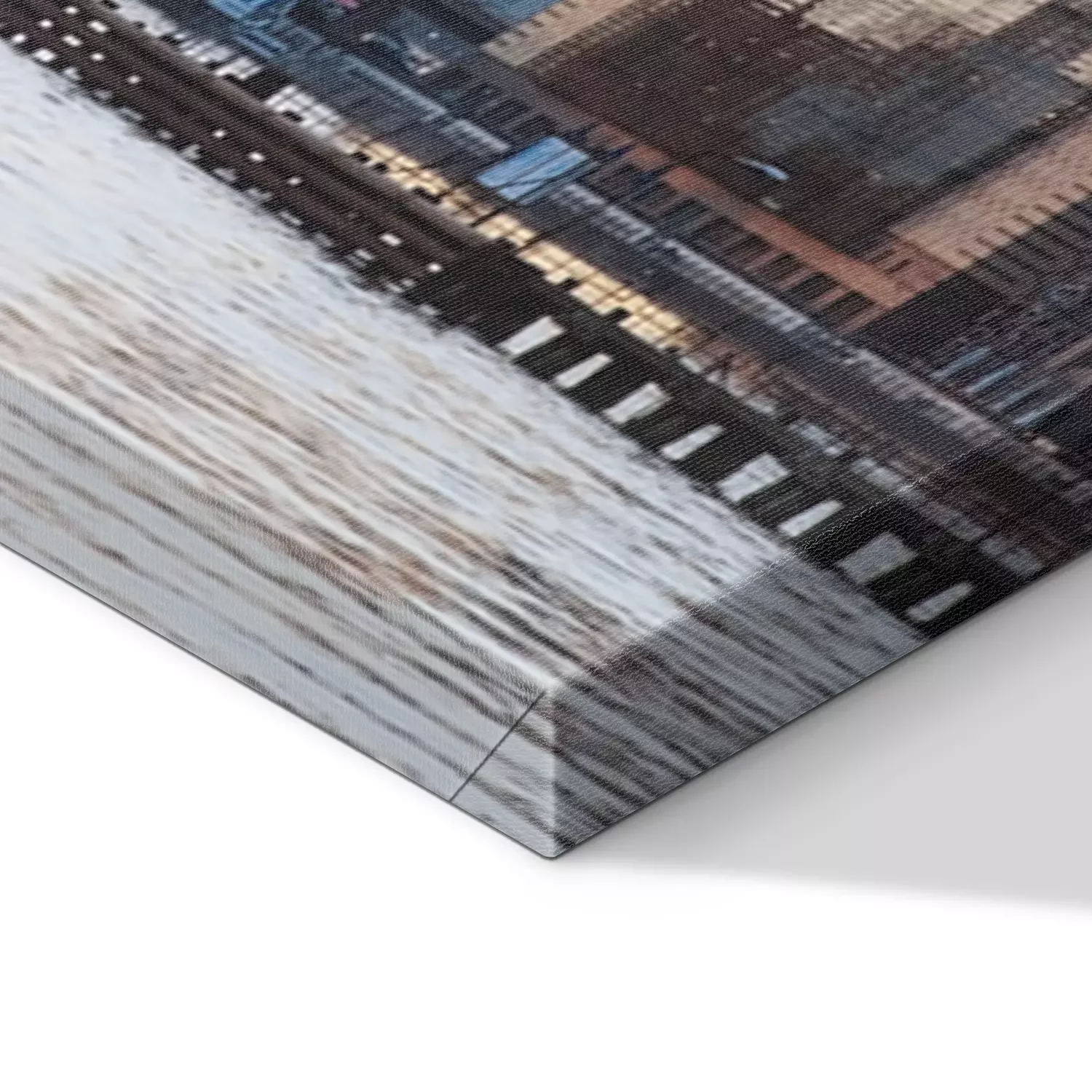 De print wordt aangebracht op hoogwaardig canvas dat op een schildersweefgetouw (spieraam) wordt gespannen. Omdat de print de zijranden bedekt, hoeft het ontwerp niet met een extra kader te worden omlijst. Wij raden ook composities aan die uit meerdere foto's bestaan en zo een coherente compositie vormen.