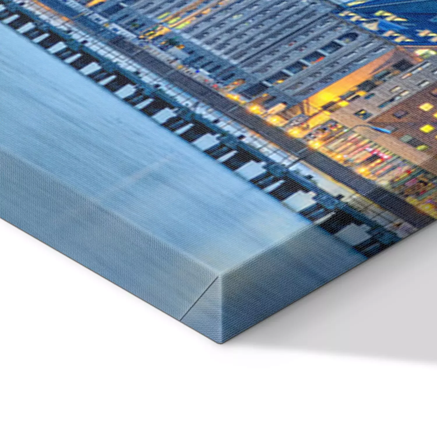 De print wordt aangebracht op hoogwaardig canvas dat op een schildersweefgetouw (spieraam) wordt gespannen. Omdat de print de zijranden bedekt, hoeft het ontwerp niet met een extra kader te worden omlijst. Wij raden ook composities aan die uit meerdere foto's bestaan en zo een coherente compositie vormen.